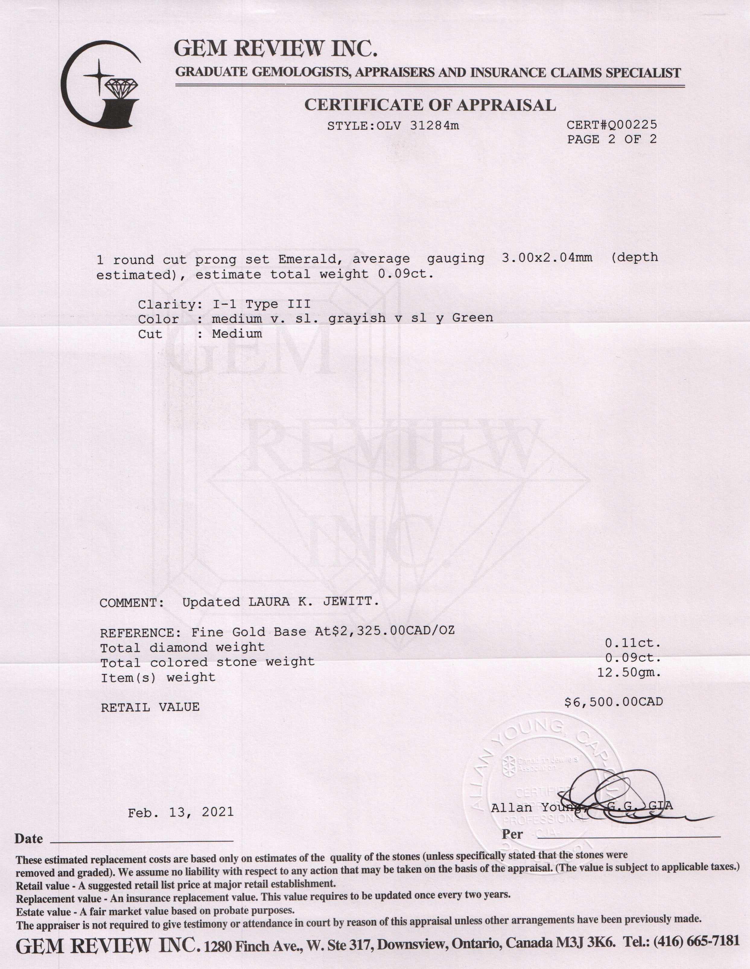 - 1 Round Cut Emerald Weighing Approximately 0.09 ct