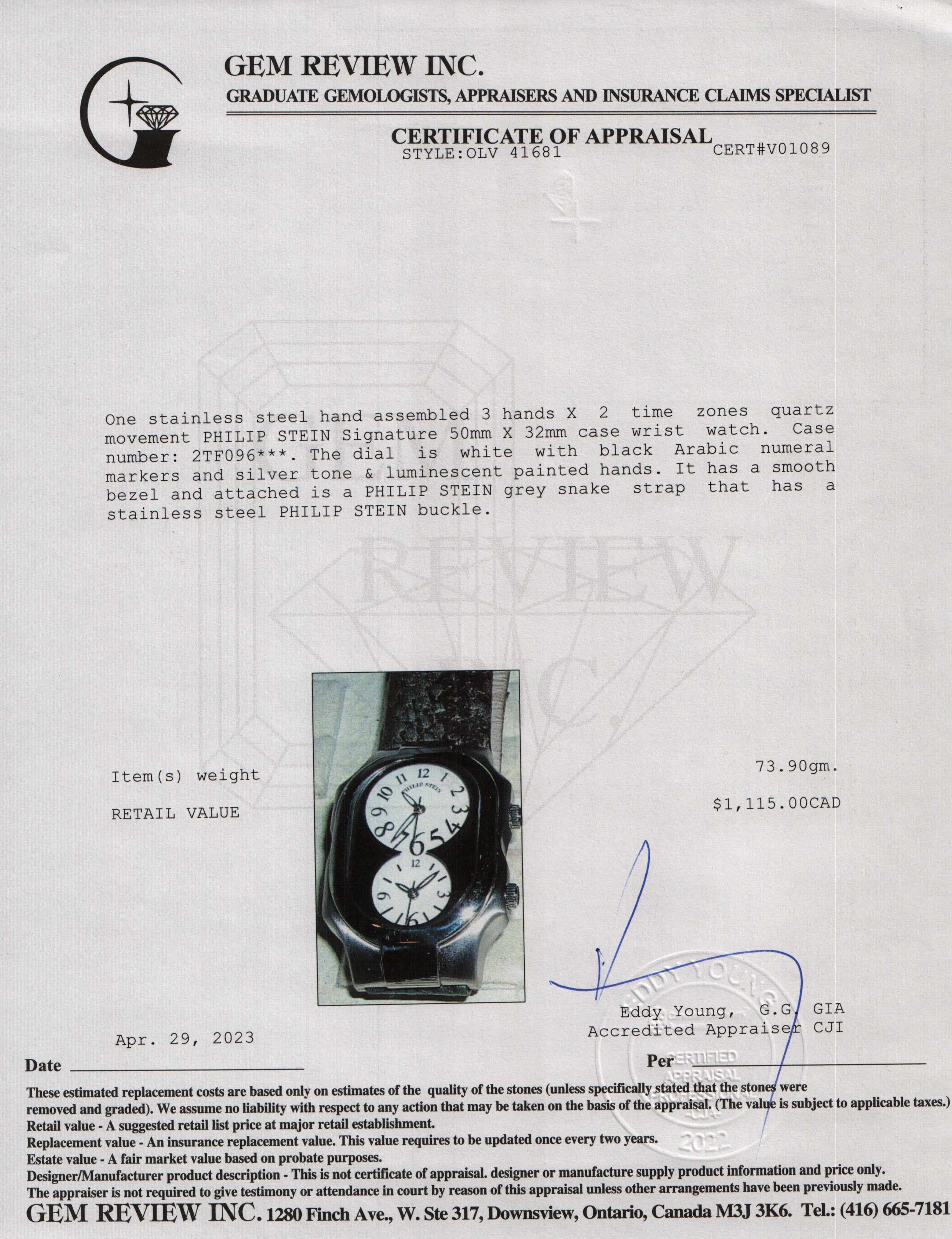 Included Items: Original Philip Stein Box, Booklet, Papers and Gem Review Appraisal