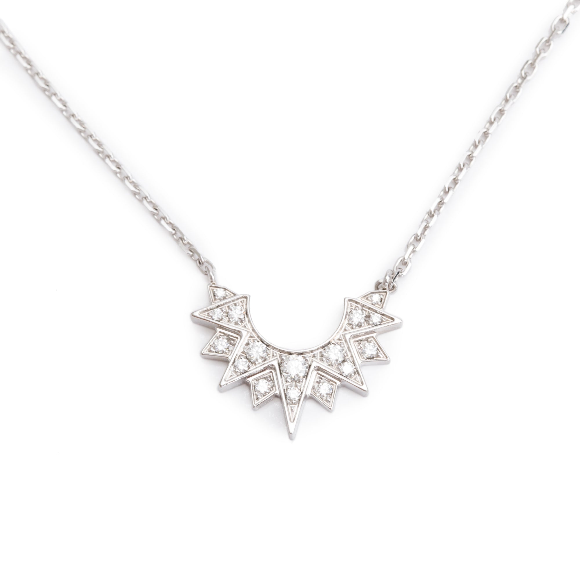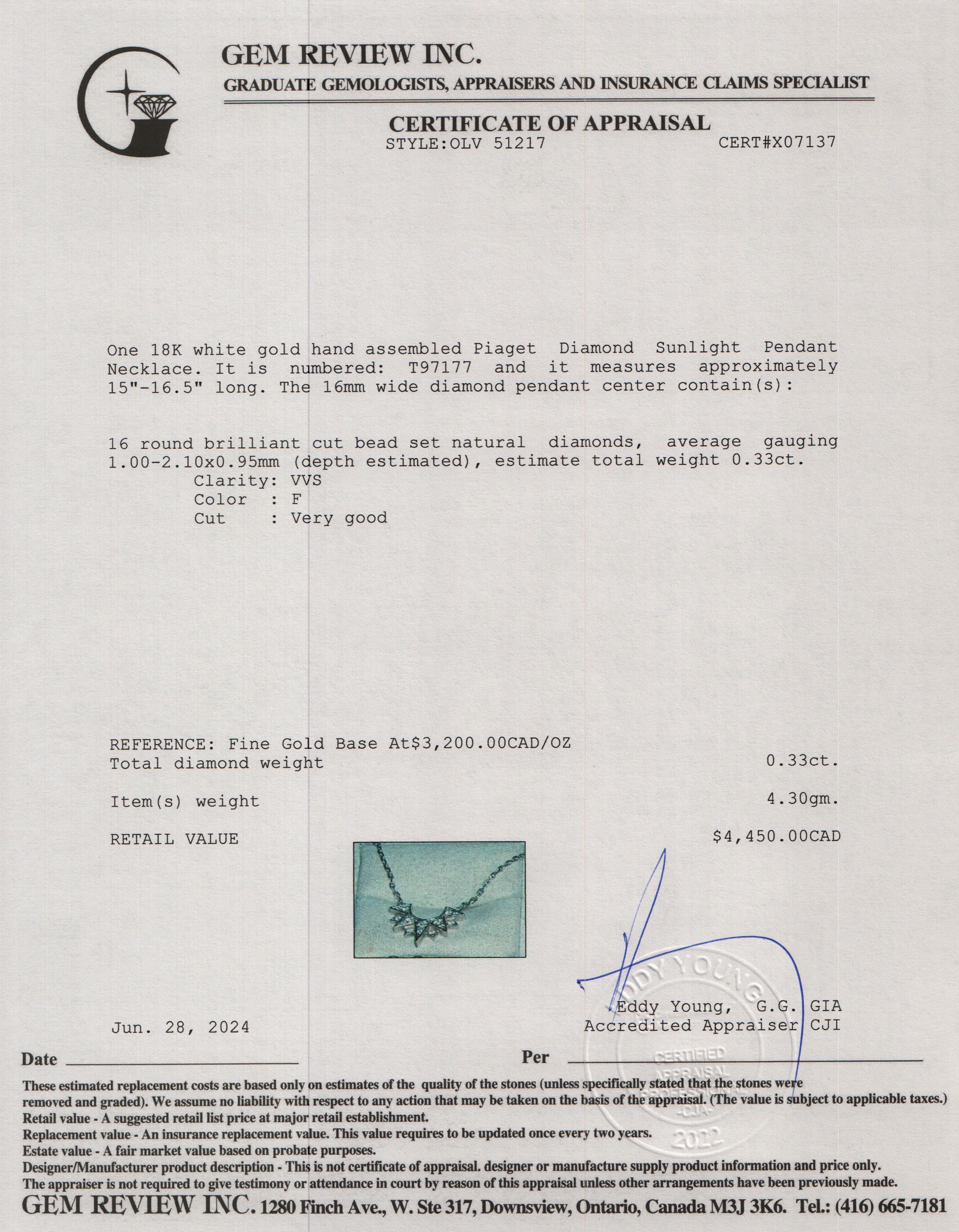18k White Gold Diamond Sunlight Pendant Necklace w/ Box & Certificate
