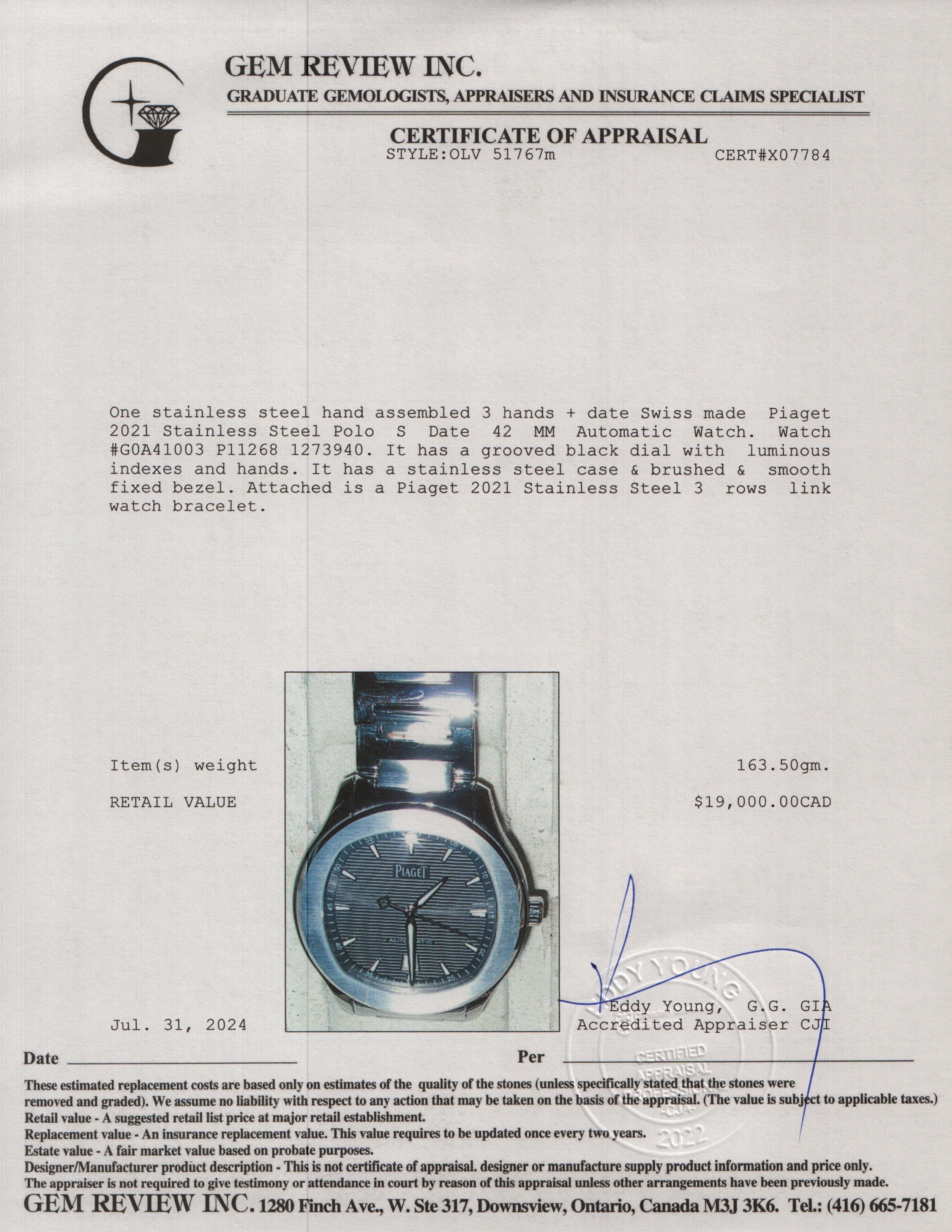 2021 Stainless Steel Polo S Date 42 MM Automatic Watch w/ Box & Papers
