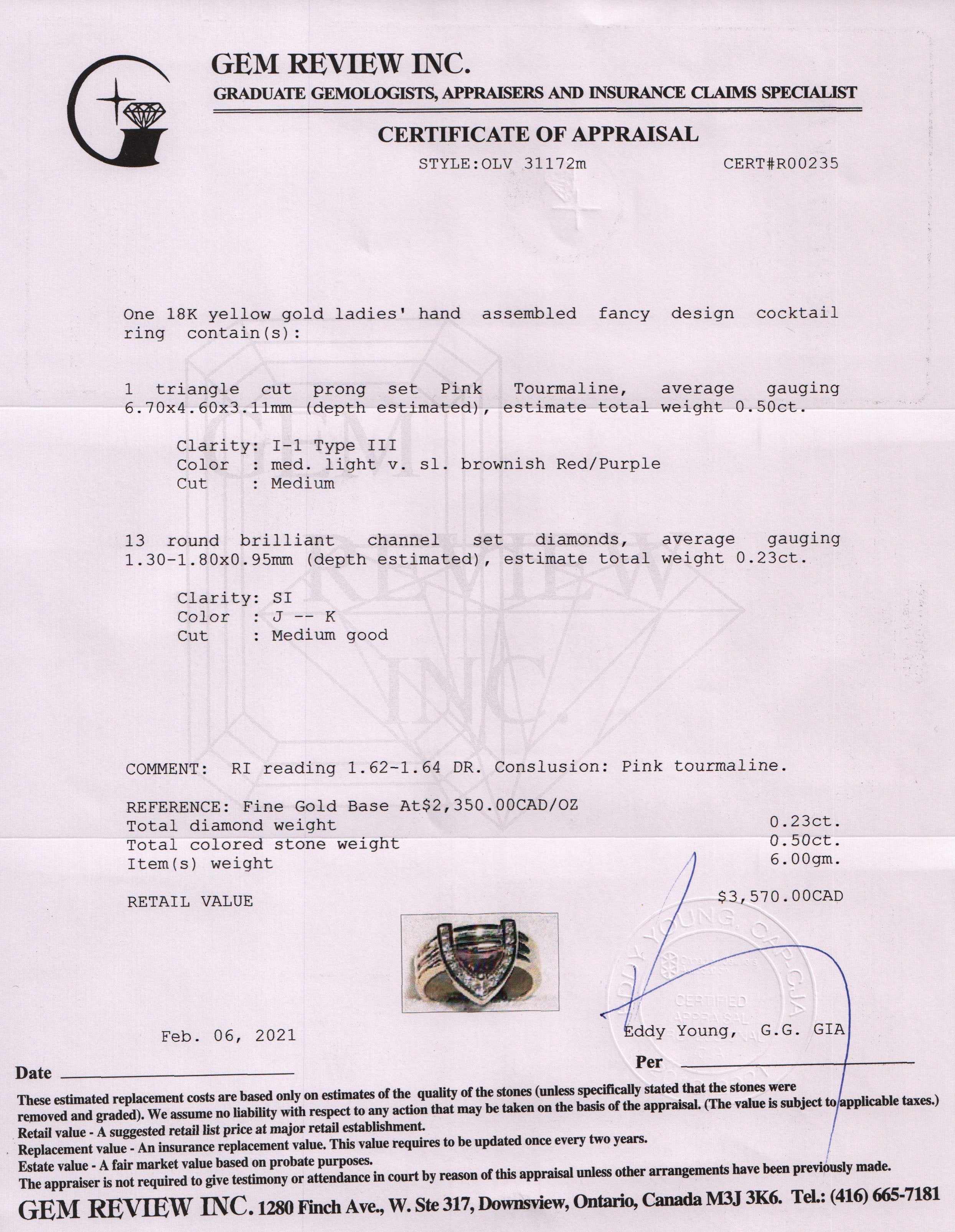 • 1 Triangle Cut Pink Tourmaline Weighing Approximately 0.50 ct.