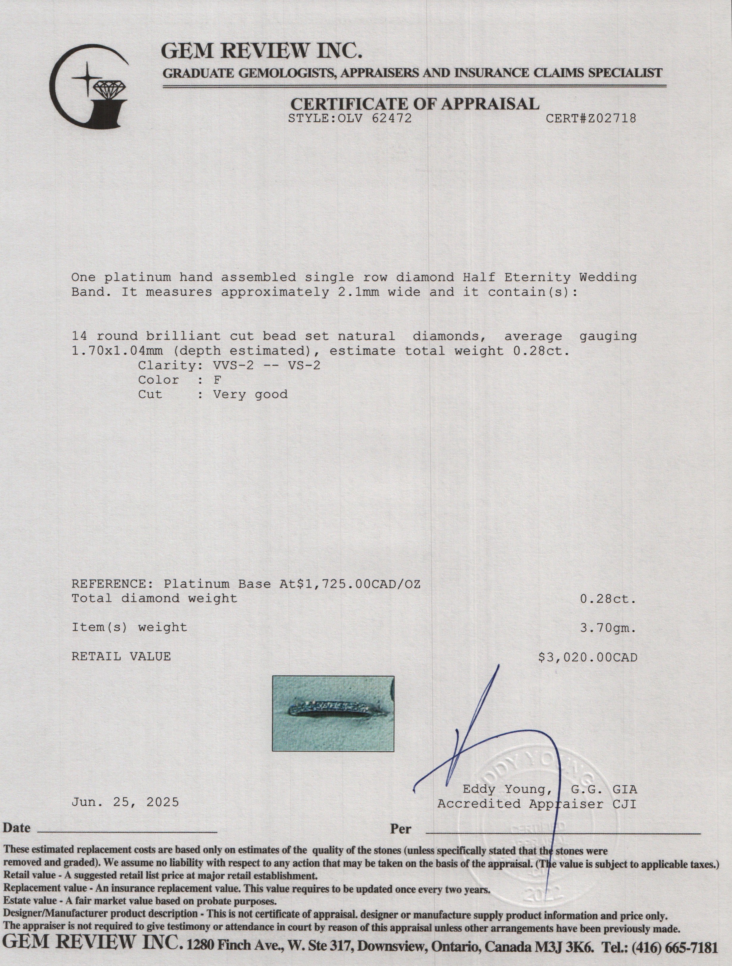 Platinum Diamond Half Eternity Wedding Band Ring, Size 6