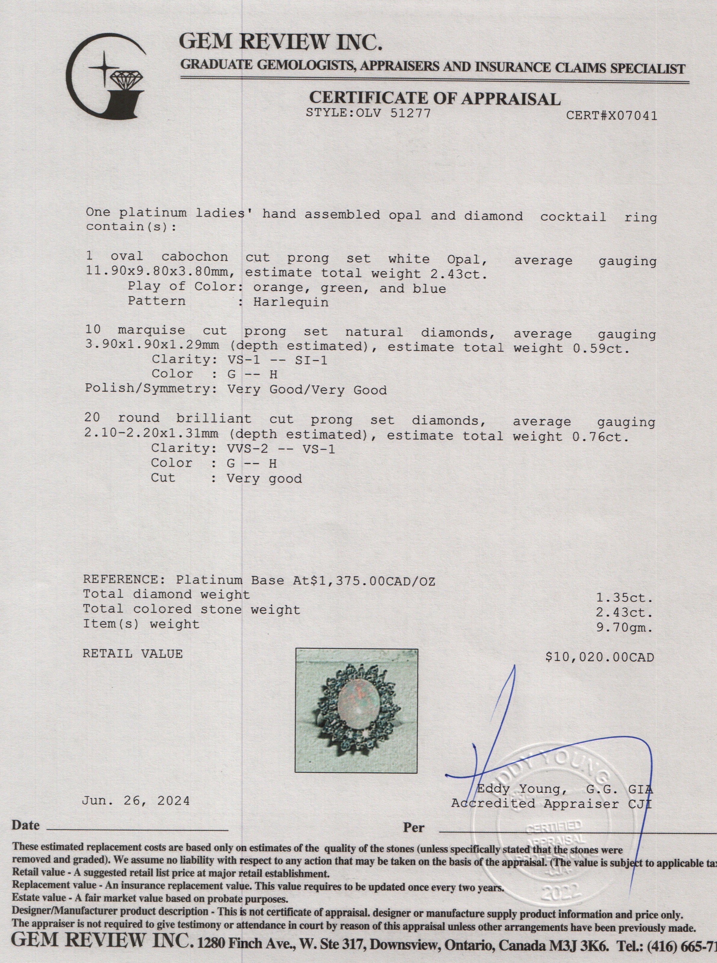 Platinum Opal and Diamond Cocktail Ring, Size 5.25