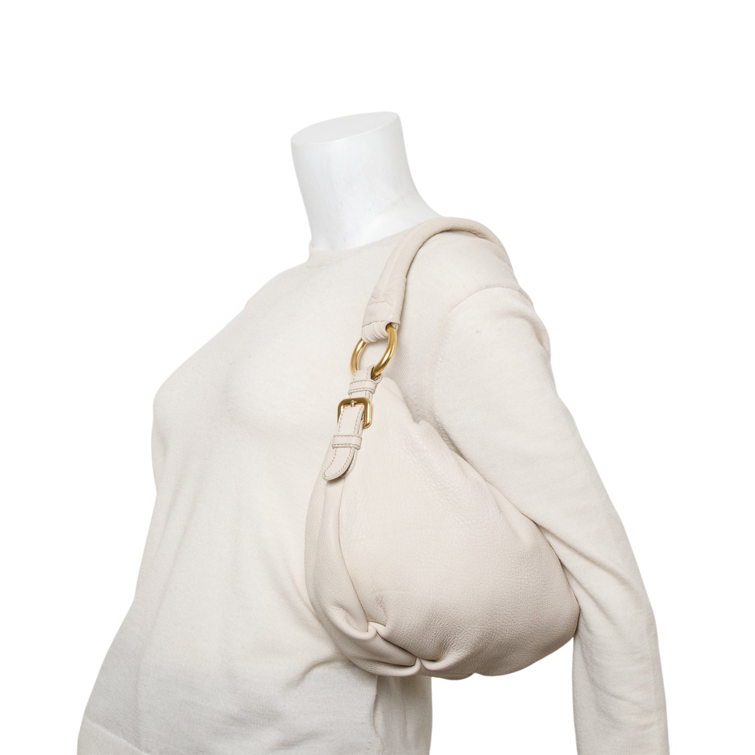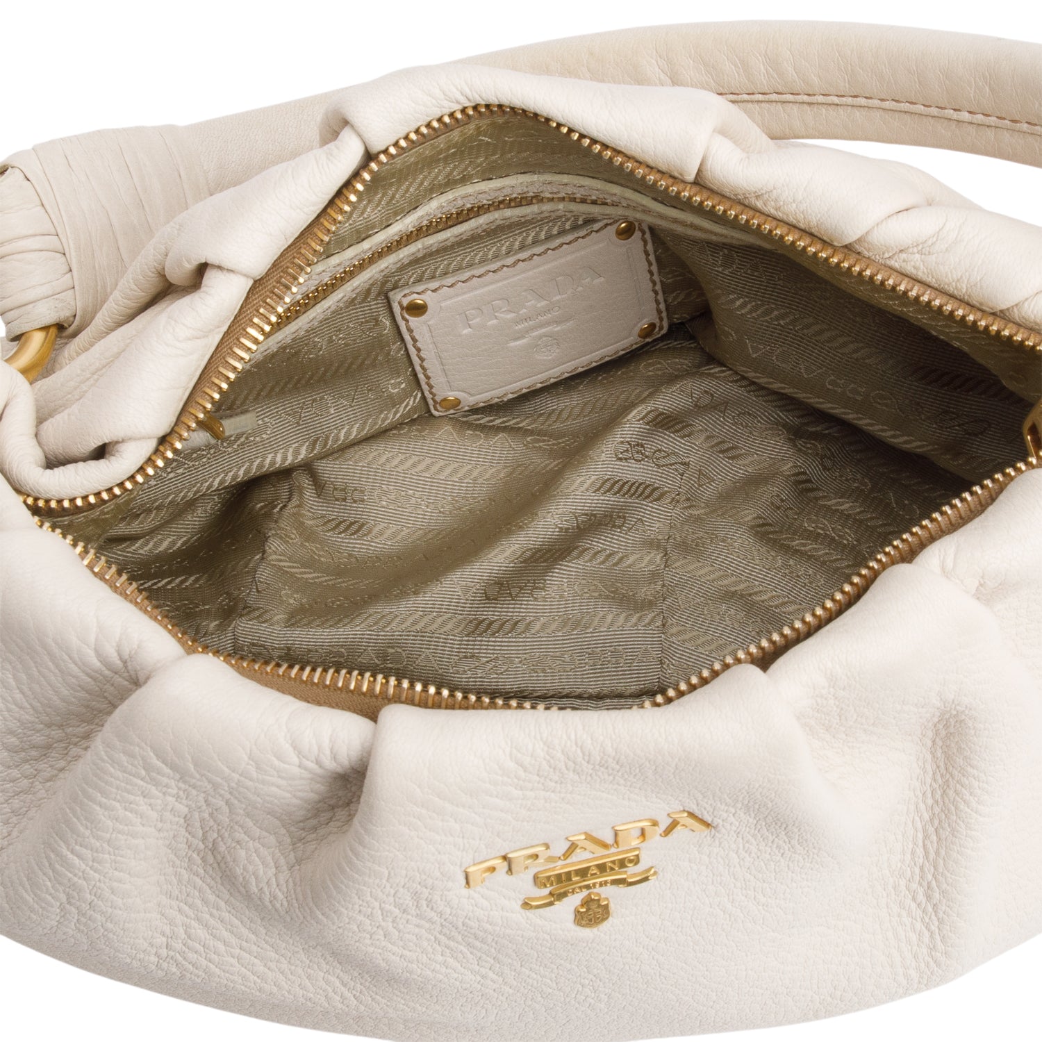 Condition: Very Good; some creasing and wear at strap; minor marks at exterior leather; clean interior.