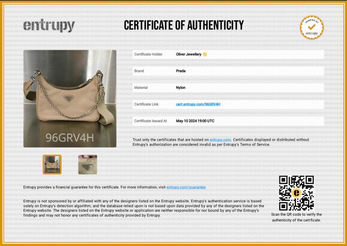Authenticity Card, Dust Bag, Zip Pouch, Detachable Straps, Entrupy Certificate of Authenticity