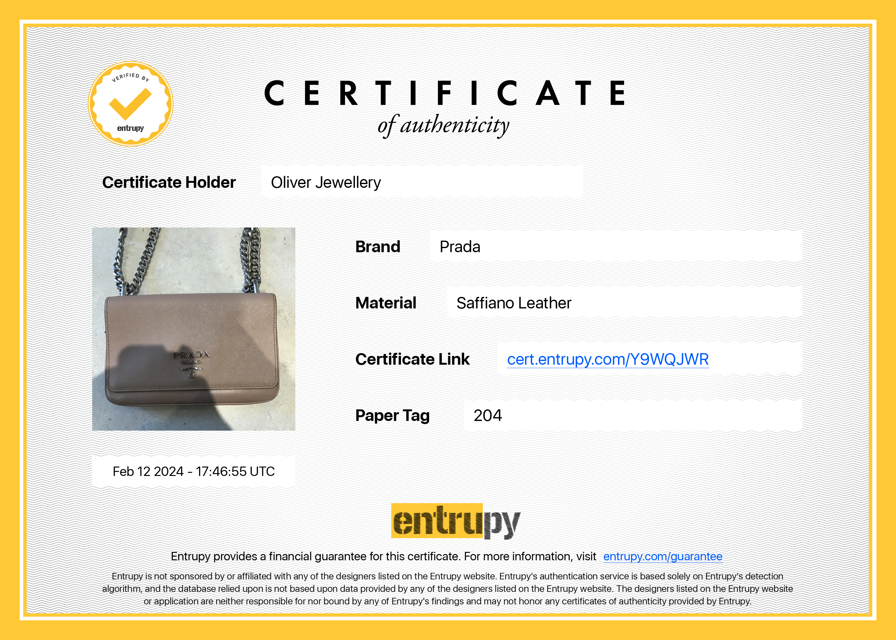 Authenticity Card, Booklet, Entrupy Certificate of Authenticity