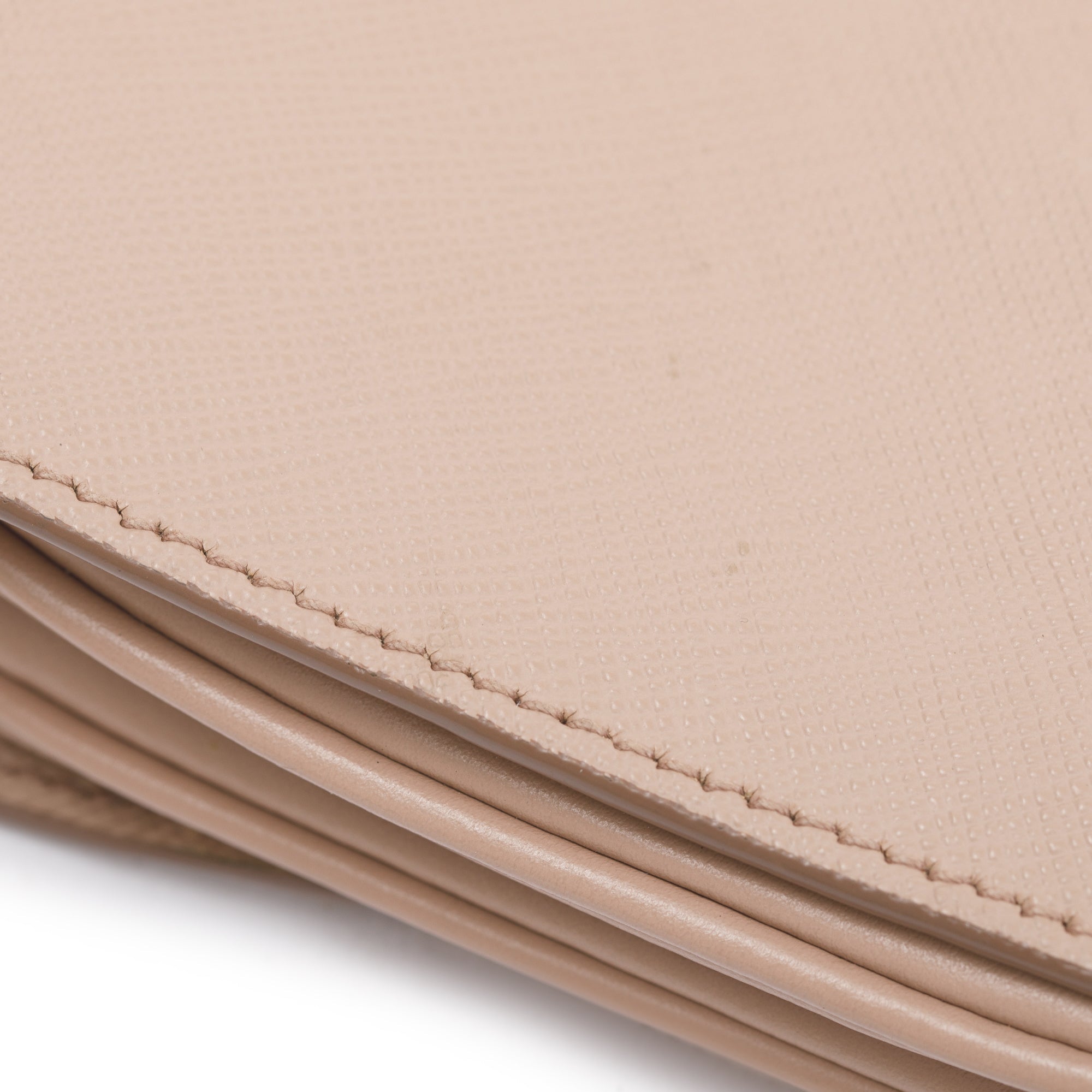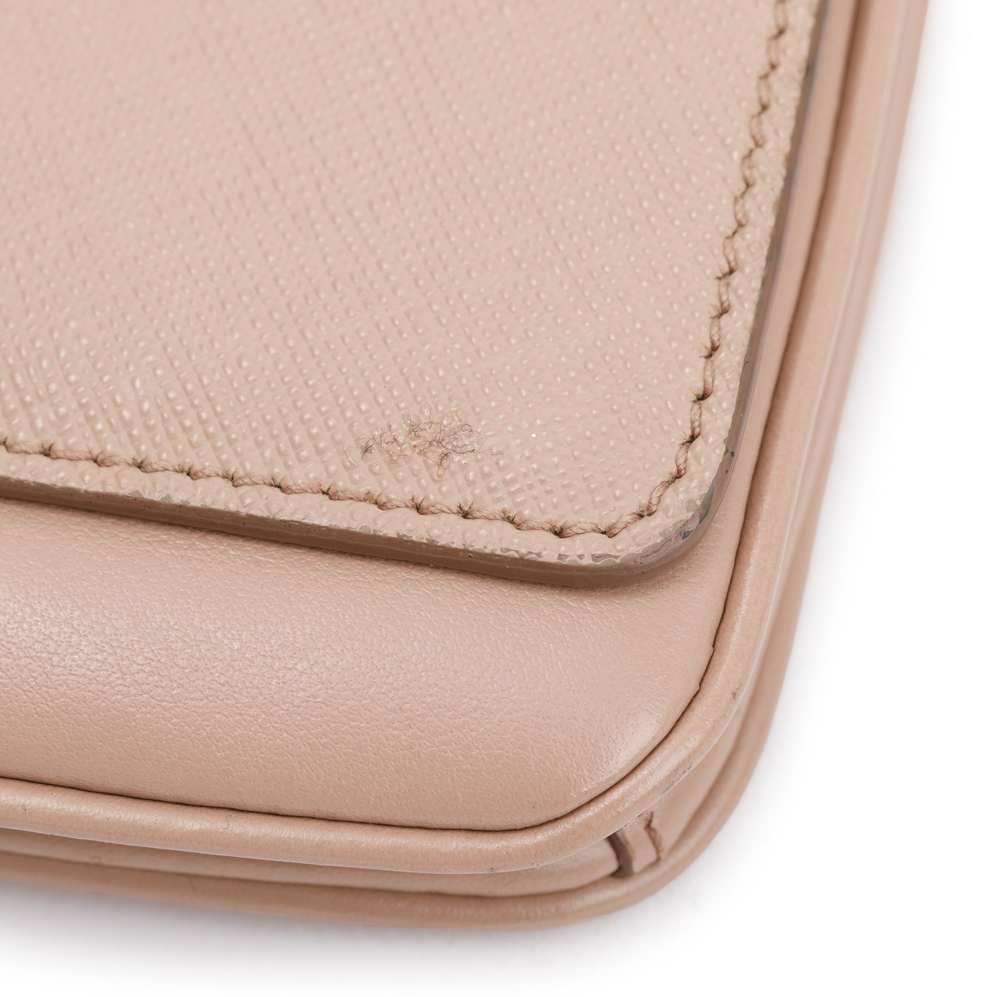 Beige Saffiano Soft Calf Leather Chain Crossbody Bag w/ Authenticity Card