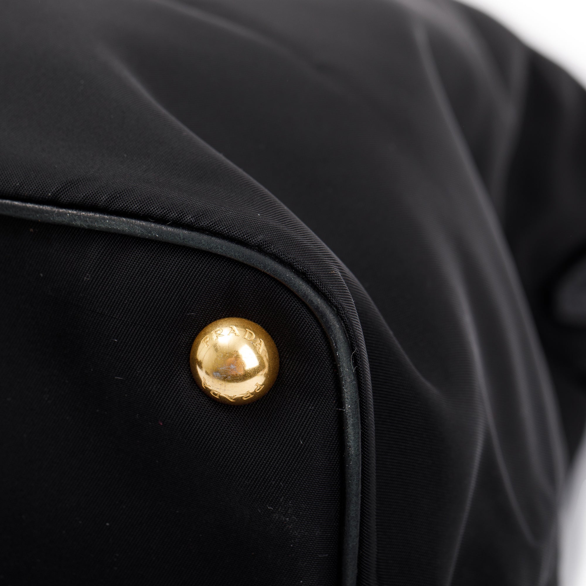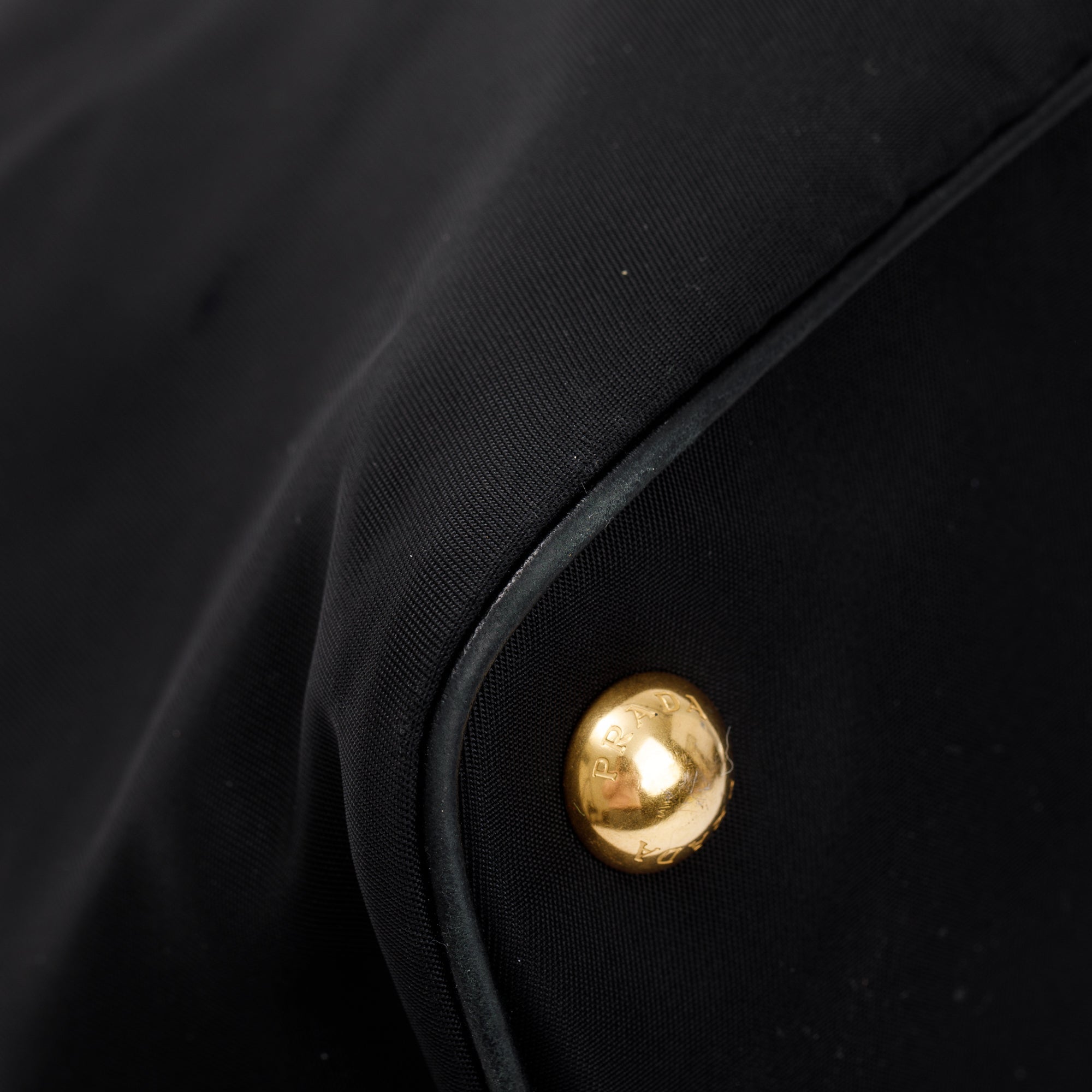Black Leather Trimmed Tessuto Nylon Tote w/ Strap