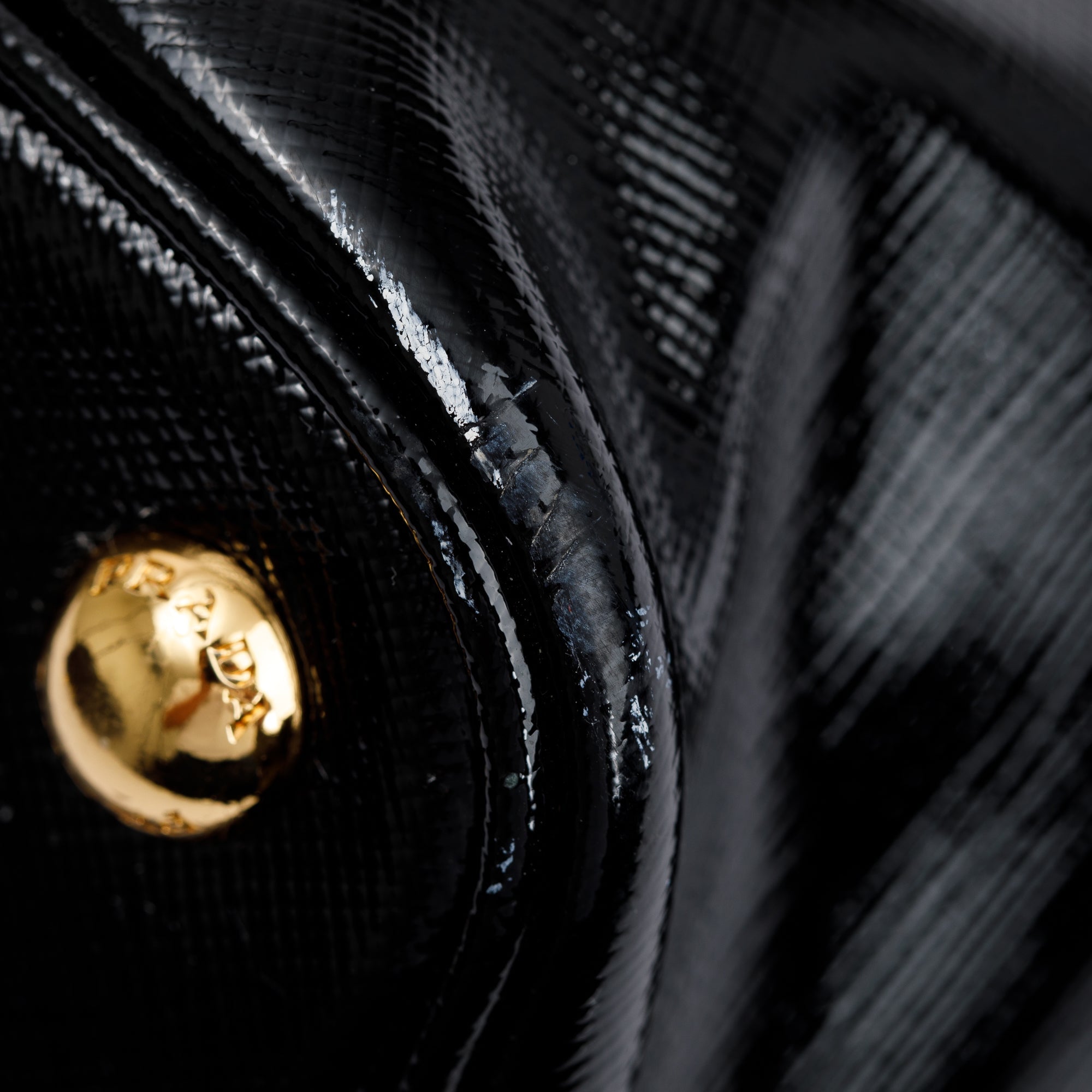 Black/Red Saffiano Vernice Shiny Medium Cuir Double Tote w/ Strap