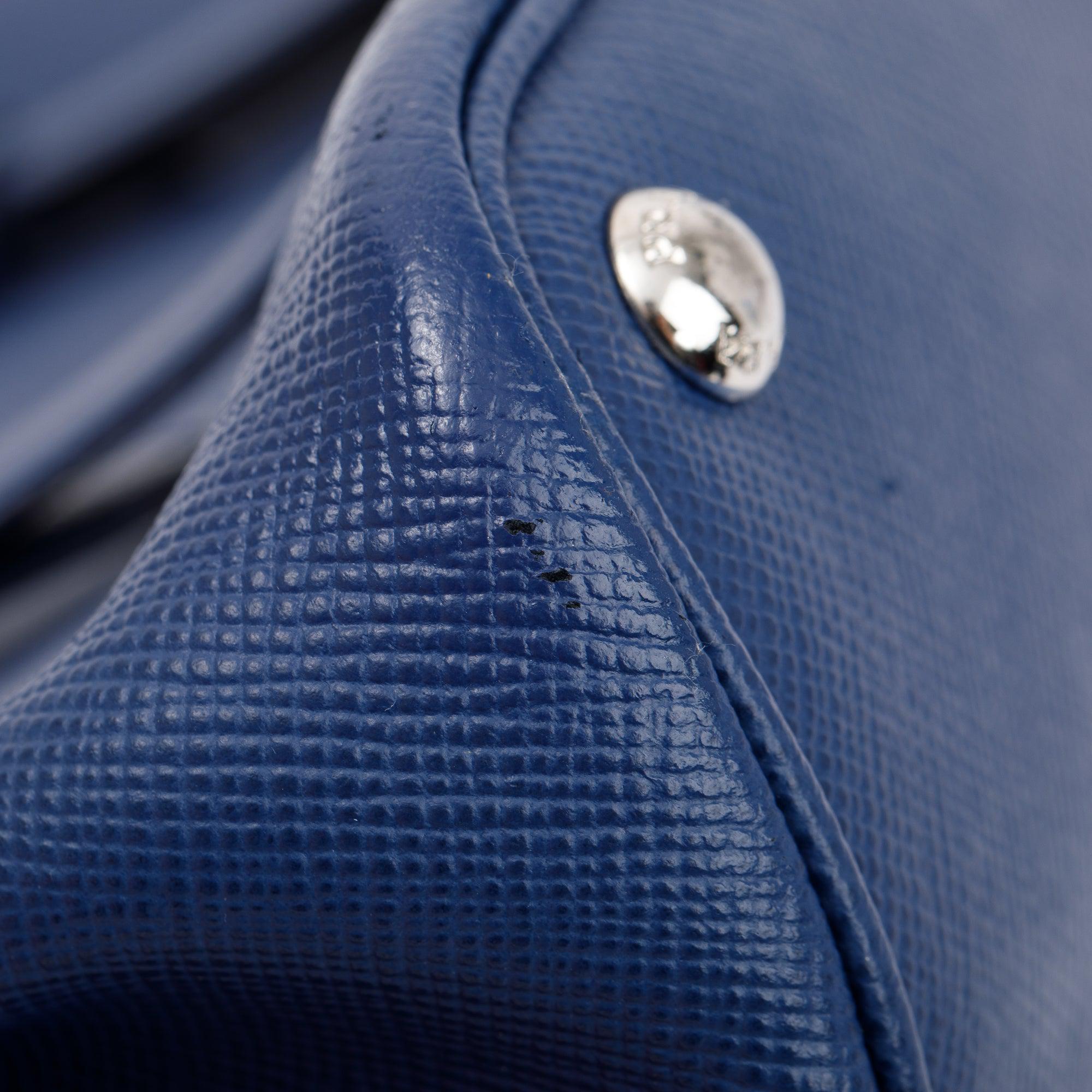 Blue Saffiano Lux Small Cuir Double Tote w/ Strap