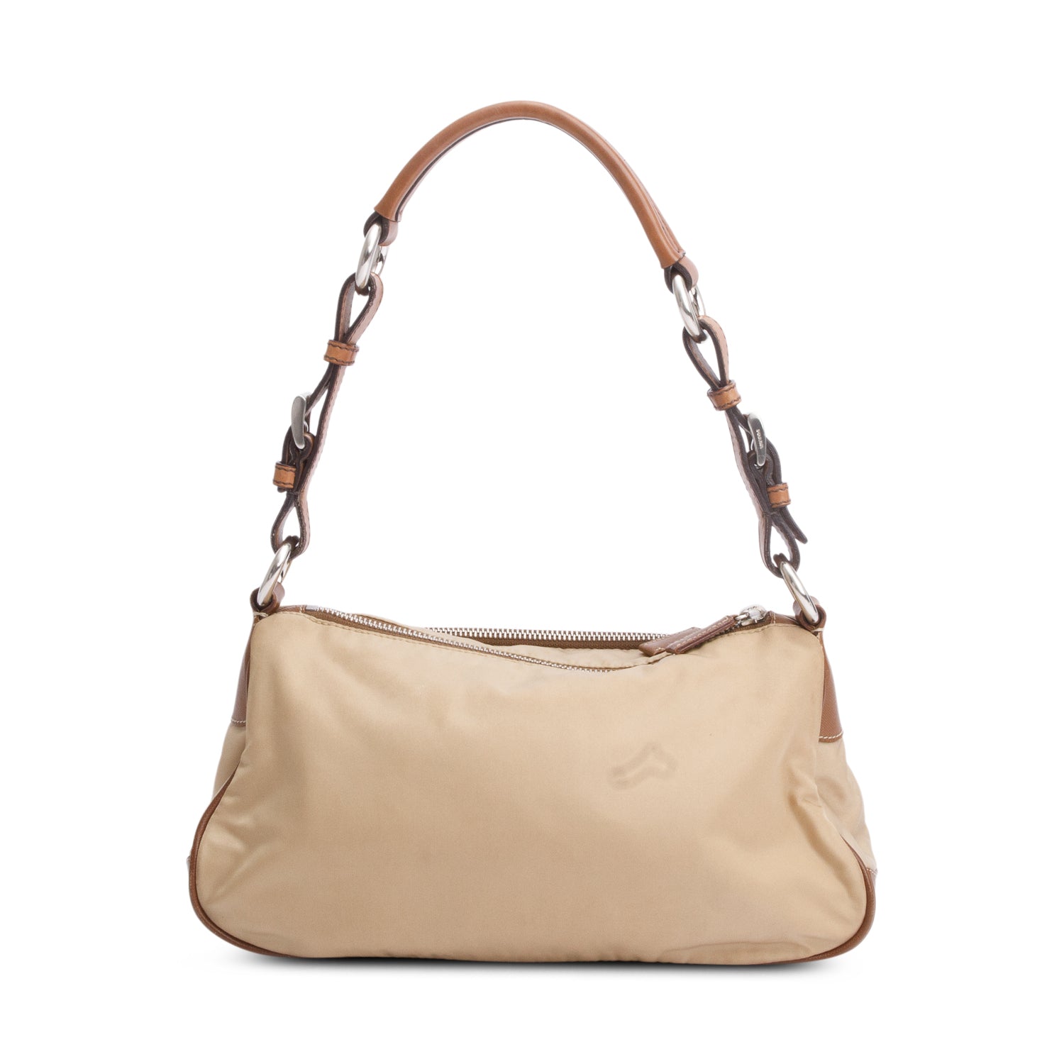 Brown Saffiano-Trimmed Tessuto Nylon Shoulder Bag