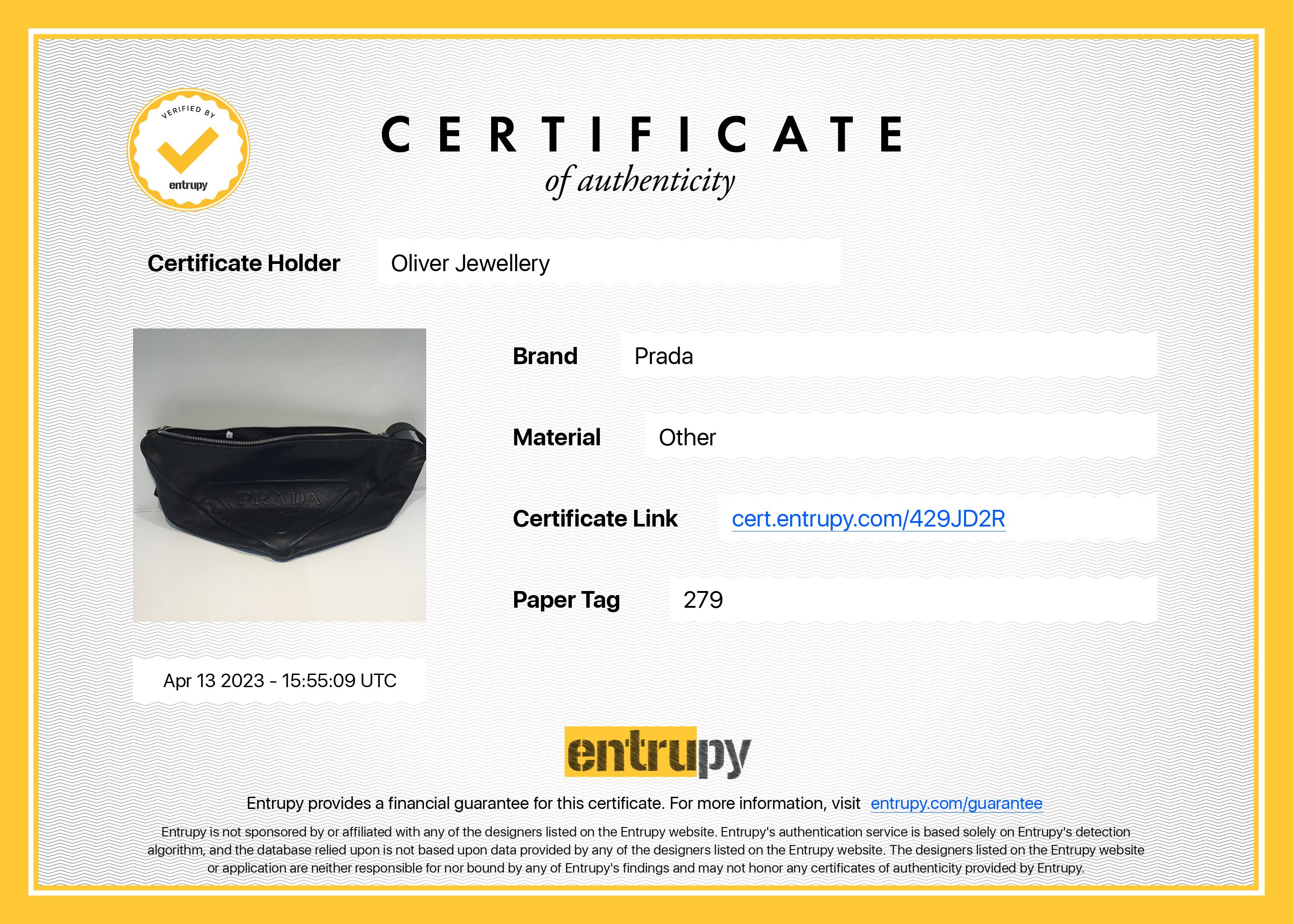 Included Items: Original Prada Dust Bag, Strap and Entrupy Certificate of Authenticity #: 429JD2R