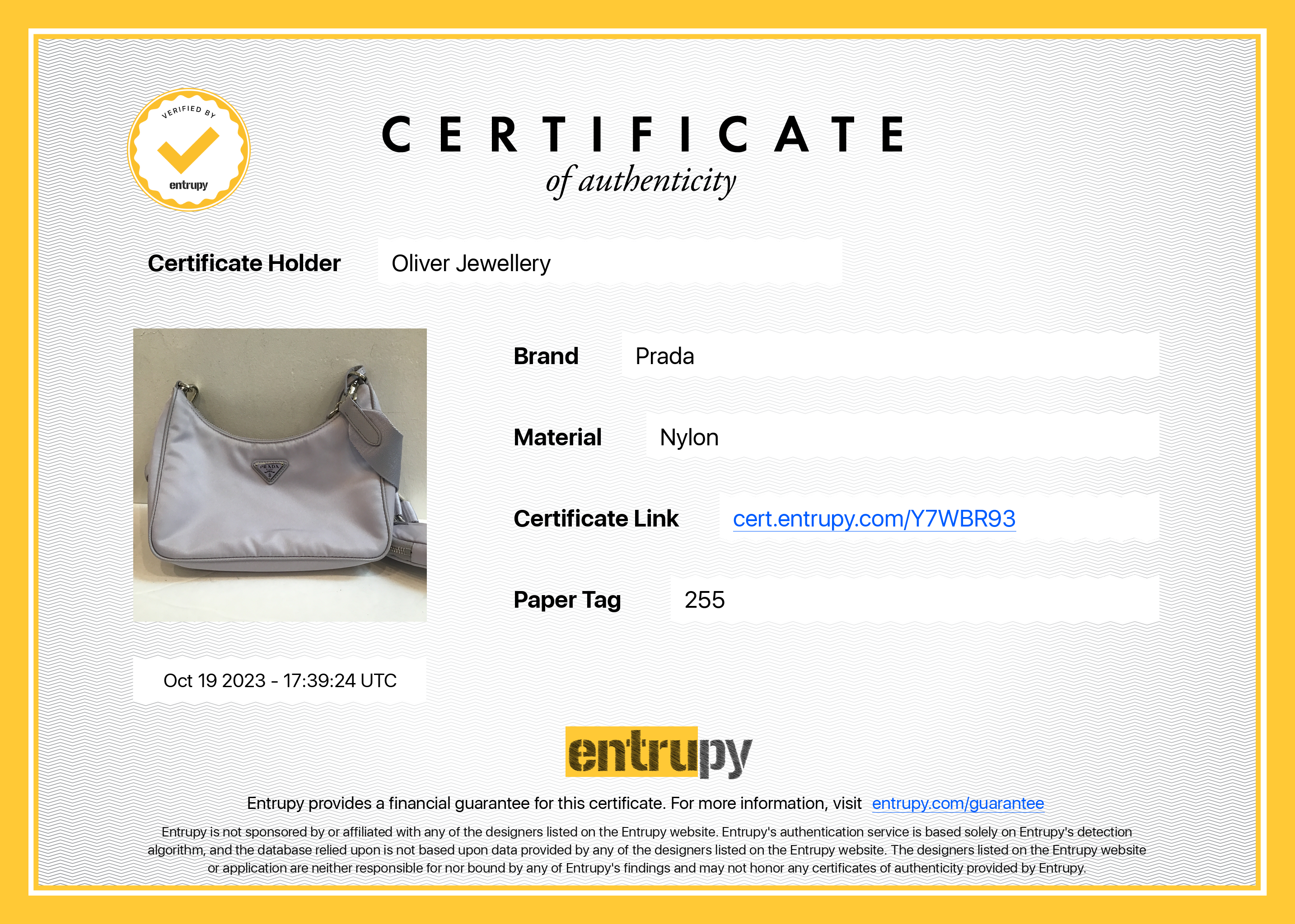 Dust Bag, Zip Pouch, Detachable Straps, Entrupy Certificate of Authenticity