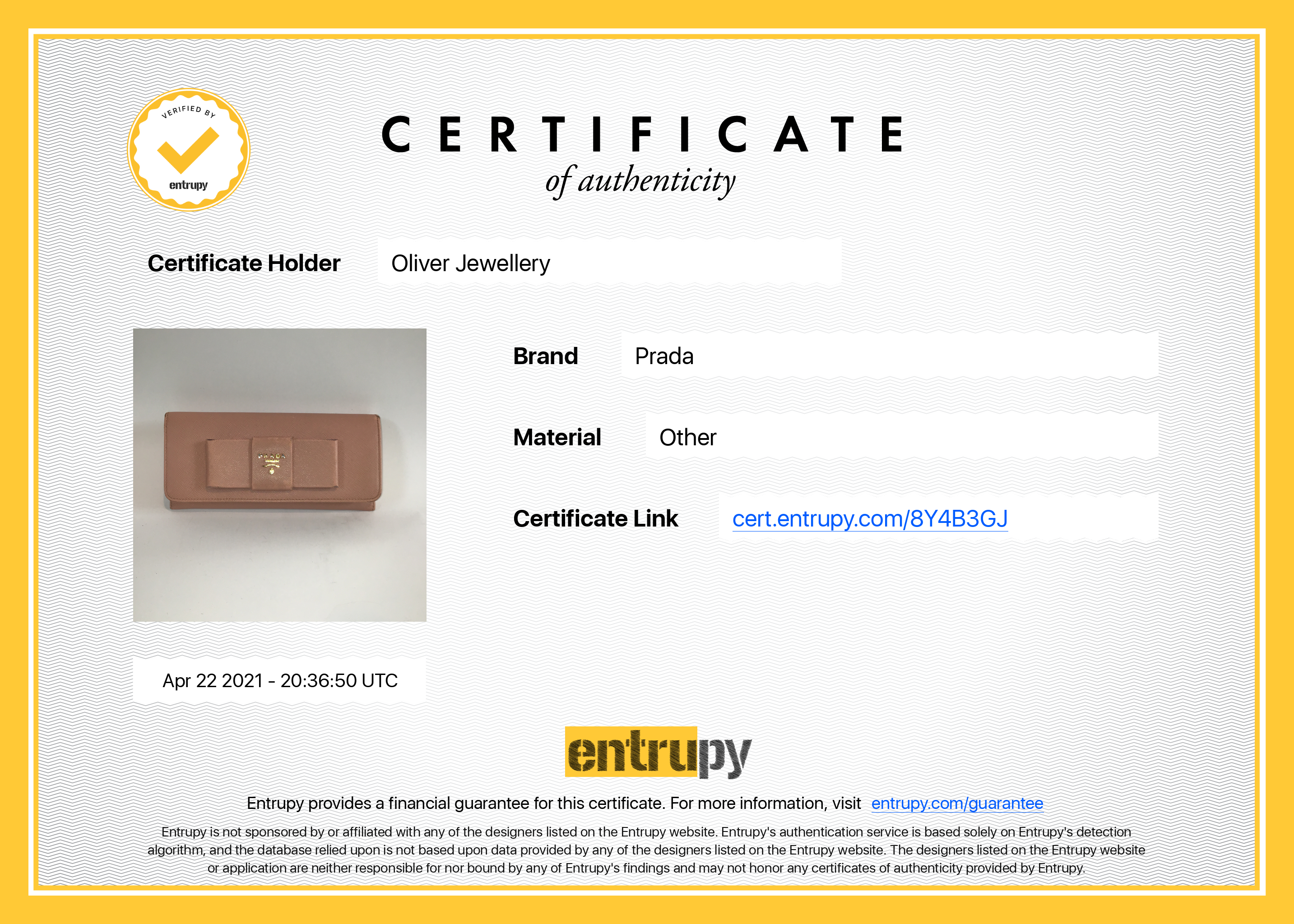 Included Items: Entrupy Certificate of Authenticity #: 8Y4B3GJ