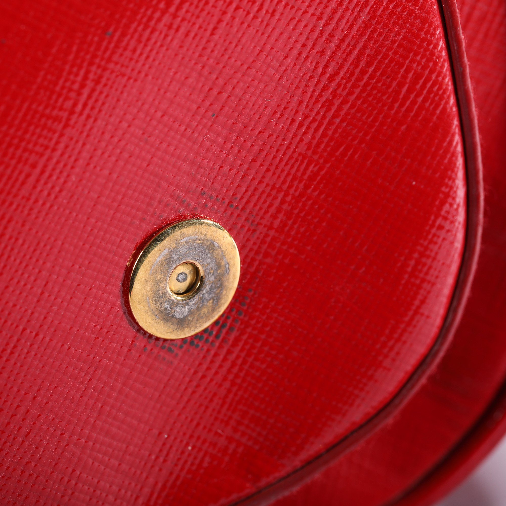 Condition: Good; minor surface scratches at hardware; some marks throughout exterior leather and base; clean interior
