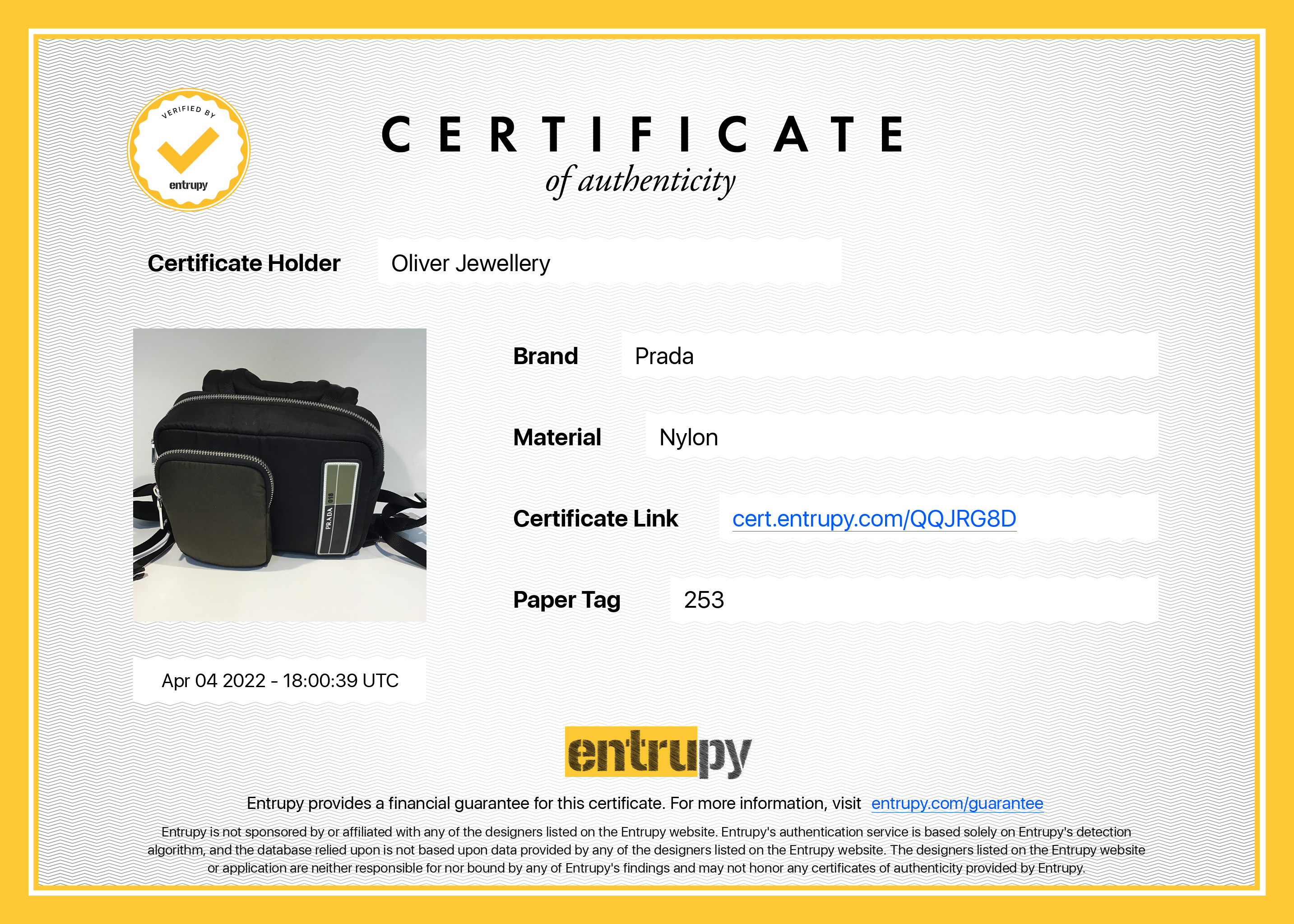 Included Items: Original Prada Dust Bag & Entrupy Certificate of Authenticity #: QQJRG8D