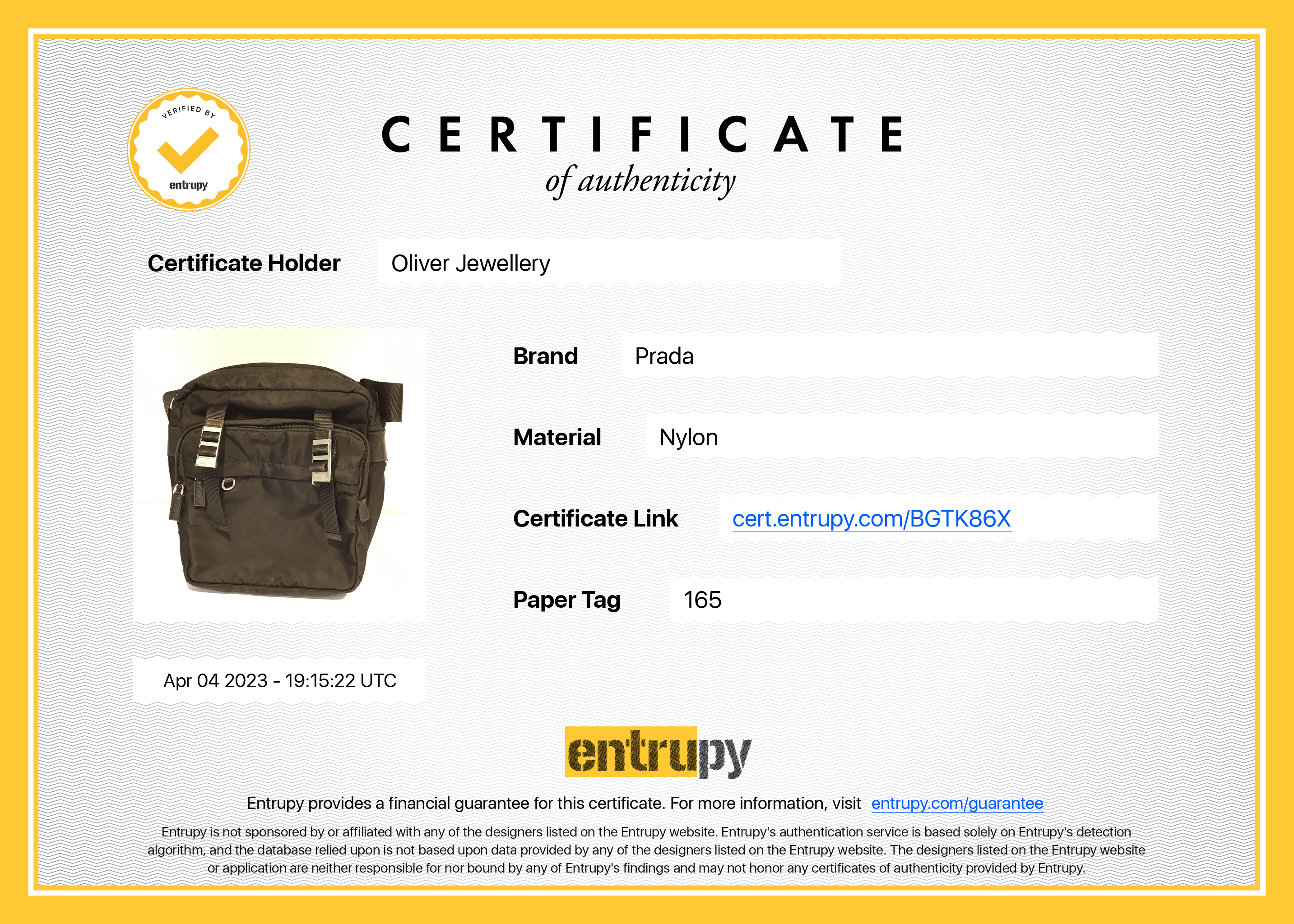 Included Items: Entrupy Certificate of Authenticity #: BGTK86X