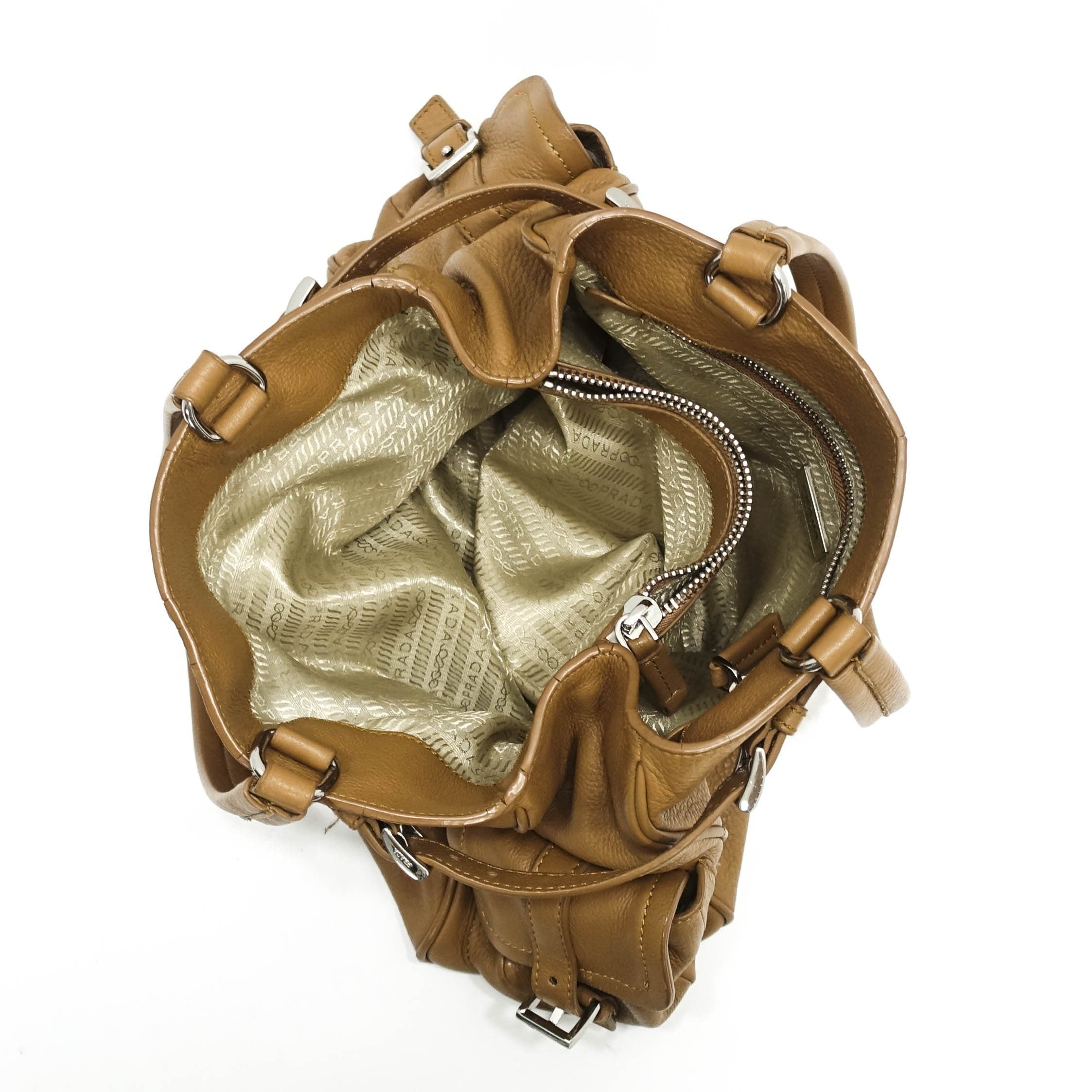 Condition: Good; slight scuffs at exterior bottom corners; slight cracking on top exterior lining; slight scratches at hardware; some pen marks at interior lining