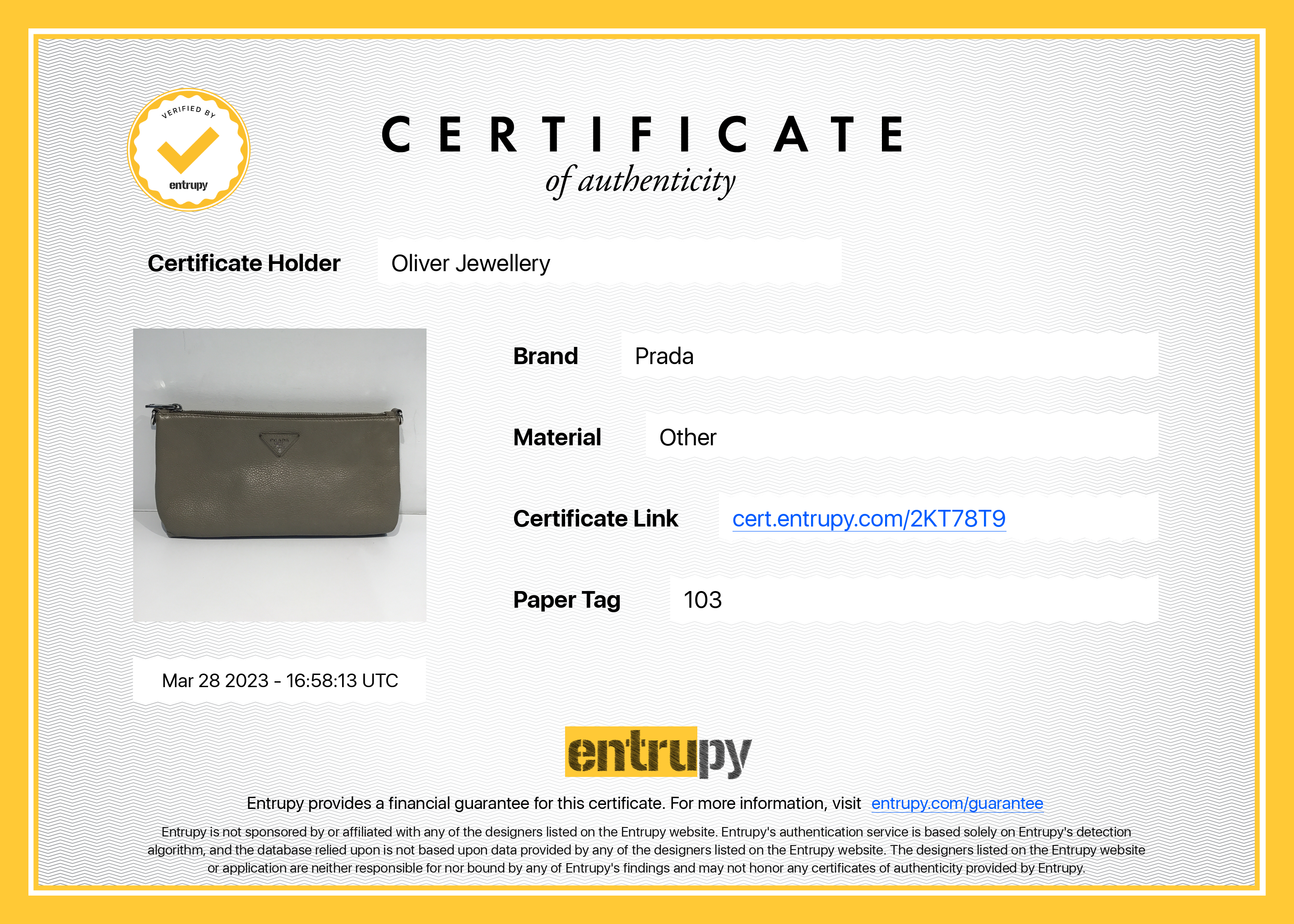 Included Items: Original Prada Authenticity Card & Entrupy Certificate of Authenticity #: 2KT78T9