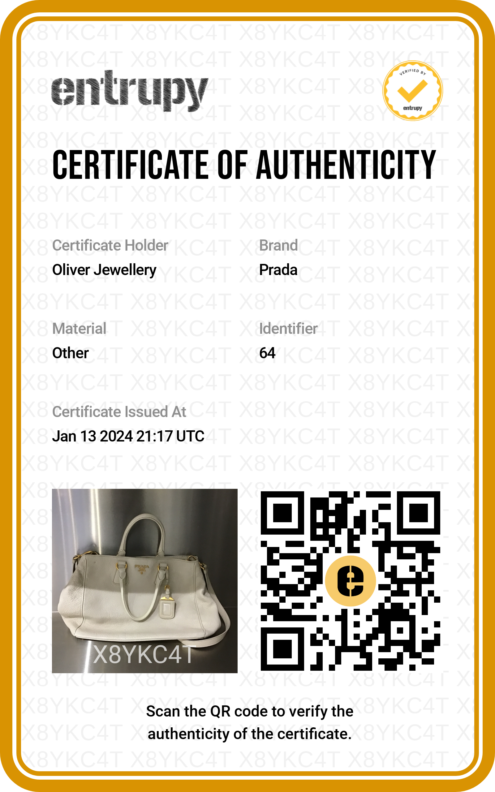 Detachable Strap, Entrupy Certificate of Authenticity