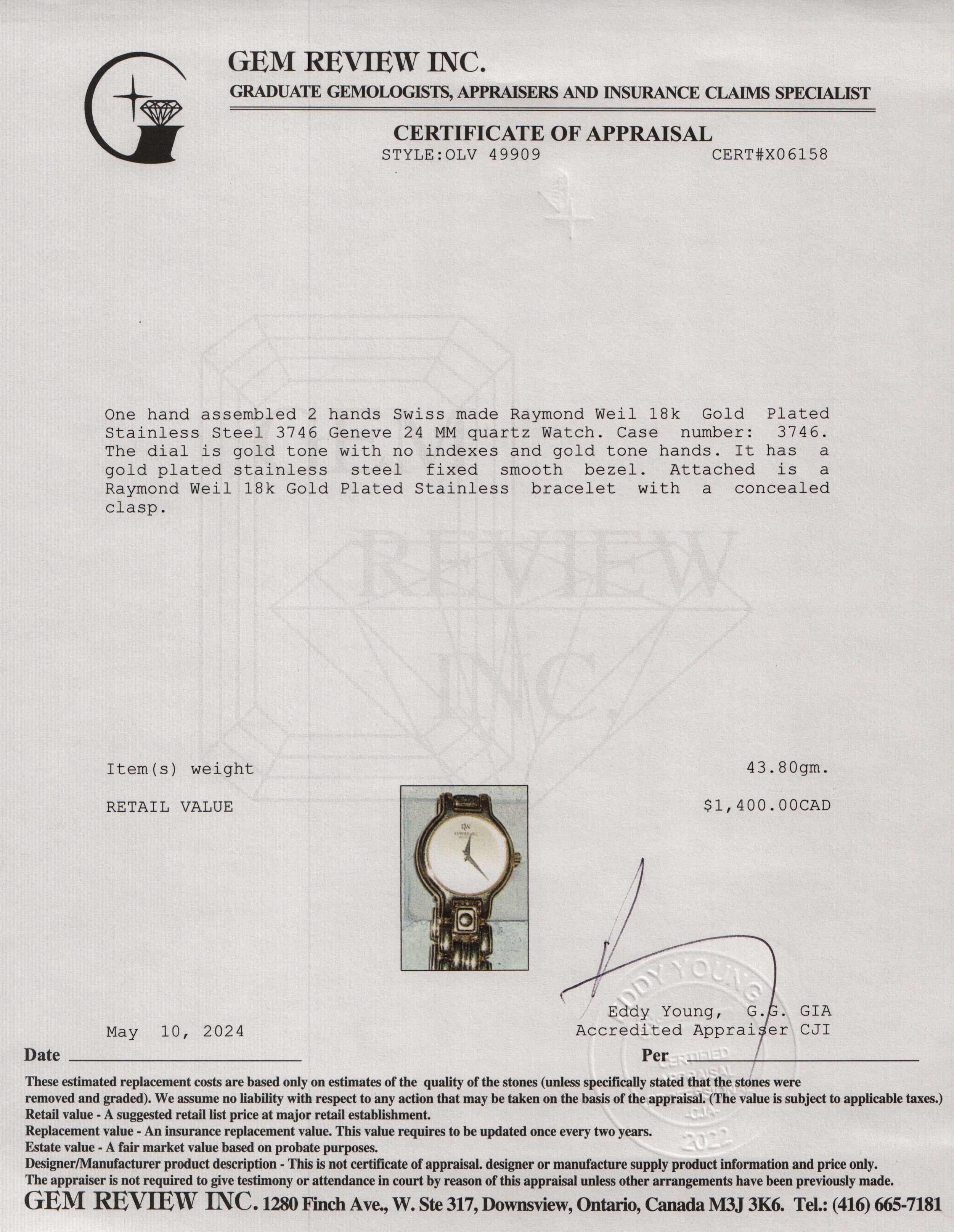 18k Gold Plated Stainless Steel 3746 Geneve 24 MM Watch