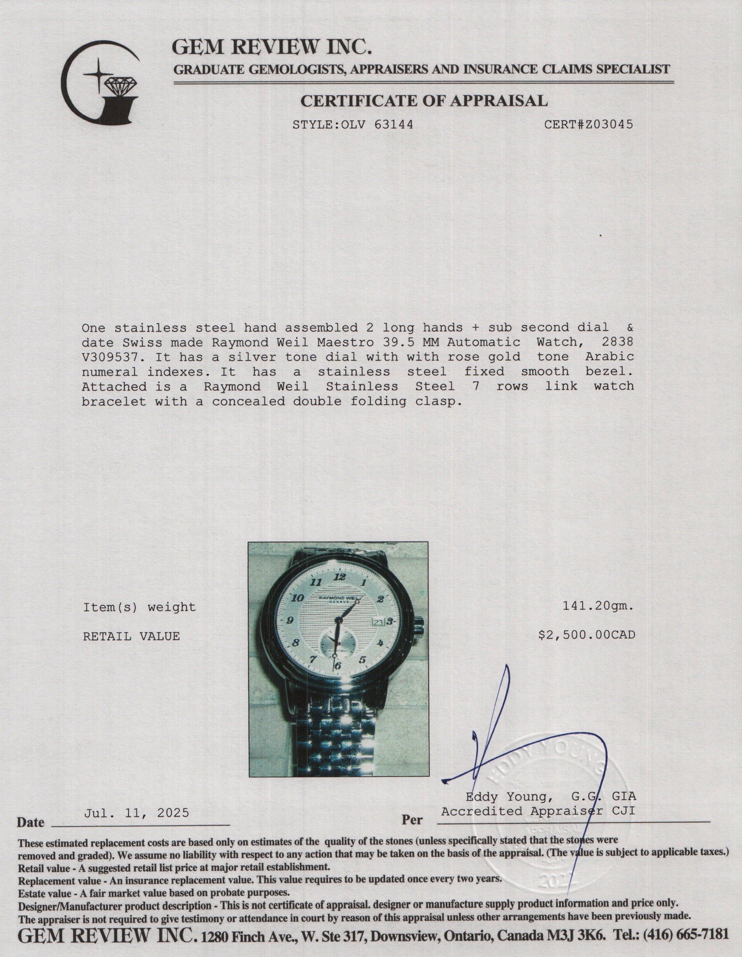 Stainless Steel Maestro 39.5 MM Automatic Watch 2838 w/ Box