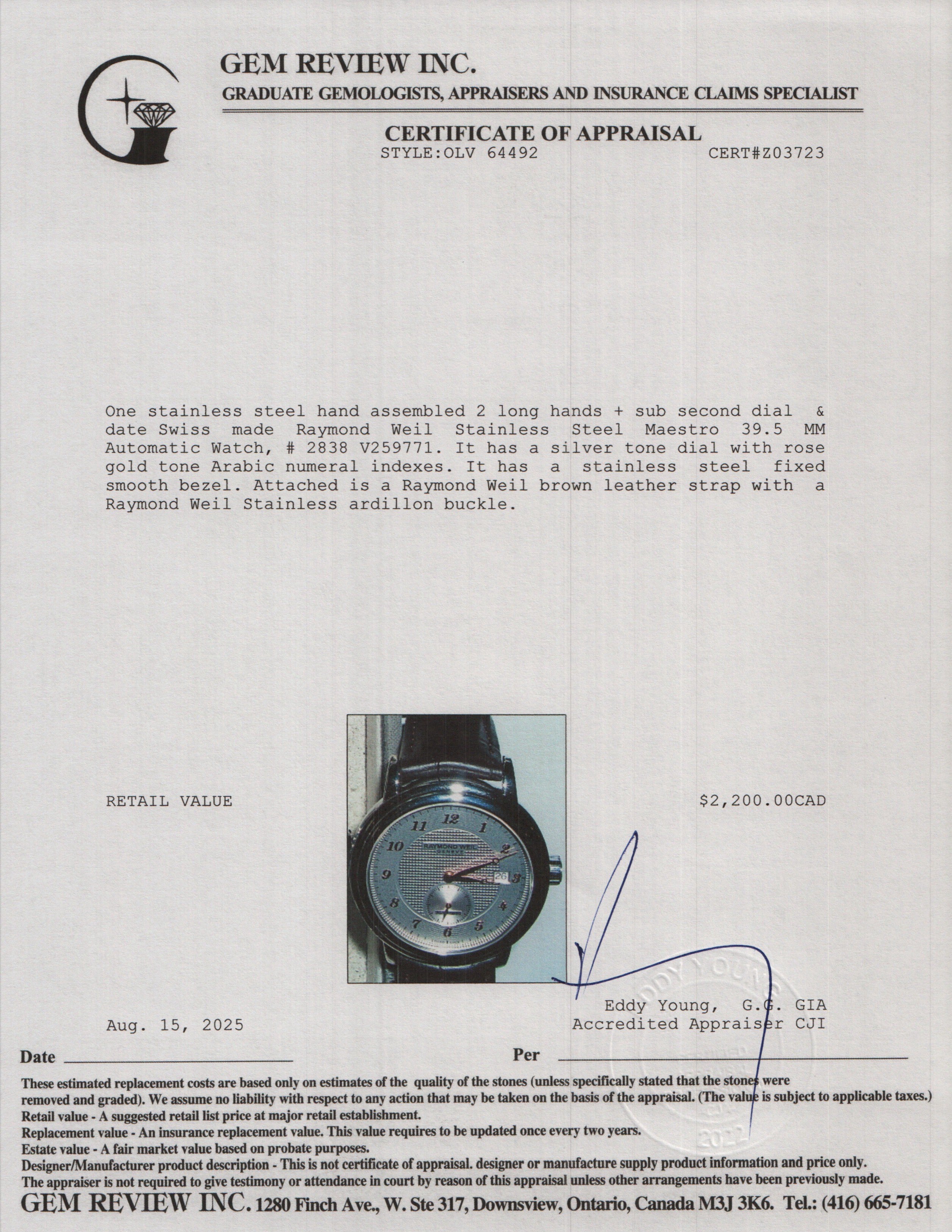 Est. Retail $2,200