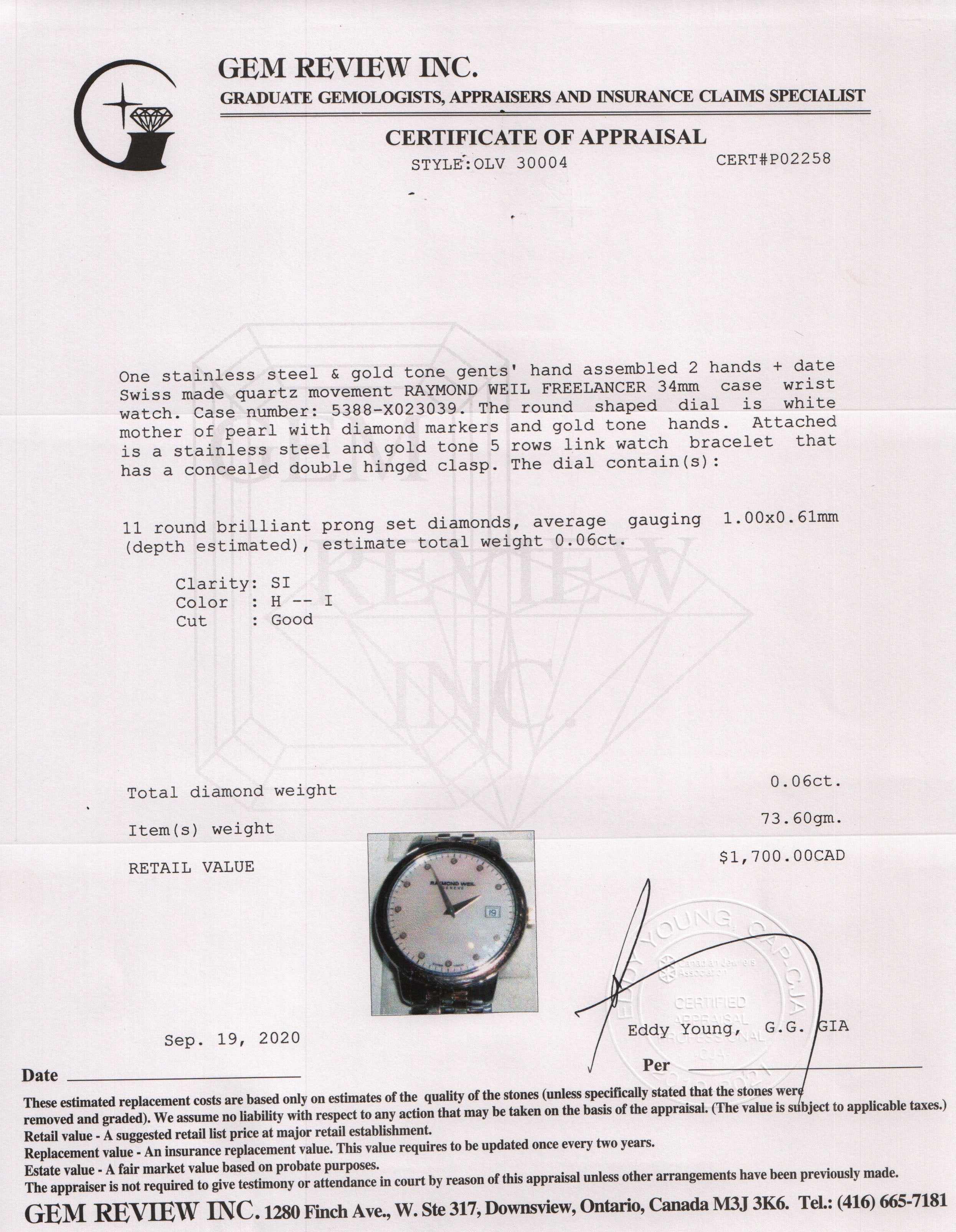 - Mother of Pearl Dial Containing 11 Round Brilliant Cut Diamonds Totalling Approximately 0.06 ct. of SI Clarity, H-I Colour, Good Cut