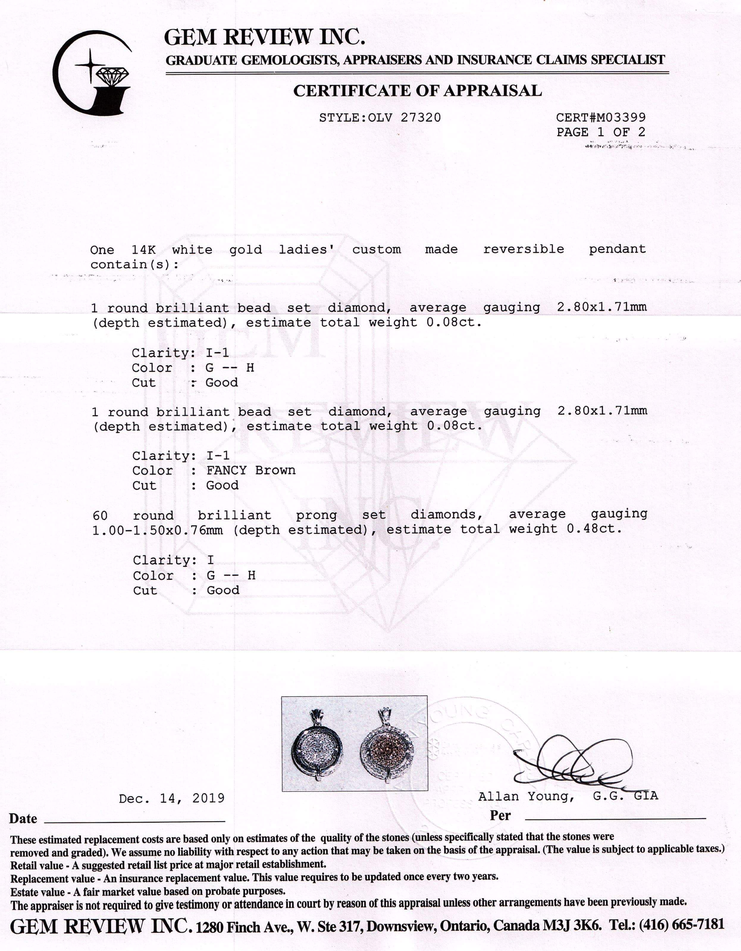 - 1 Round Brilliant Cut Diamond Weighing Approximately 0.08 ct. of I1 Clarity, Fancy Brown Colour, Good Cut