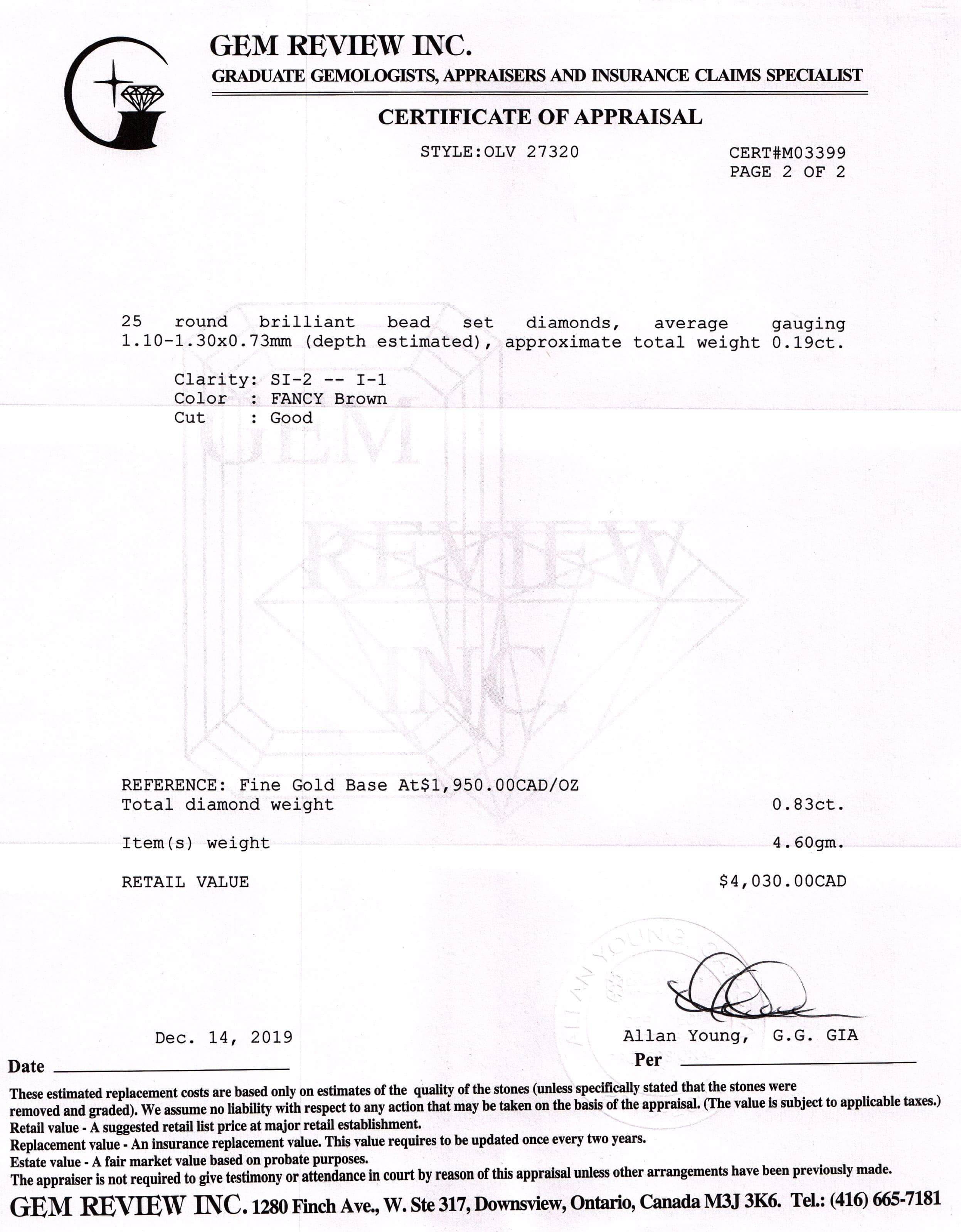 - 25 Round Brilliant Cut Diamonds Totalling Approximately 0.19 ct. of SI2-I1 Clarity, Fancy Brown Colour, Good Cut