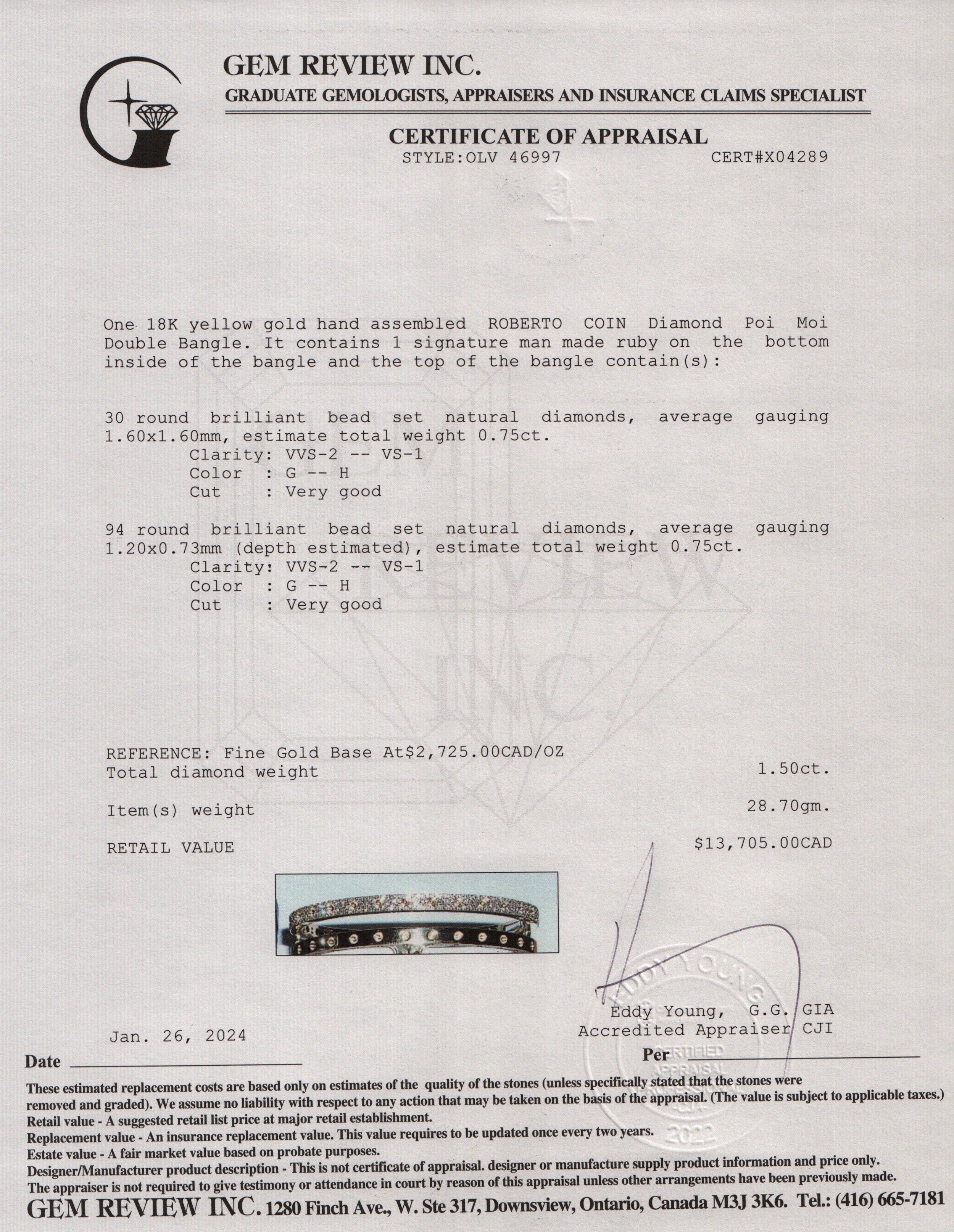18k Yellow Gold Diamond Poi Moi Double Bangle