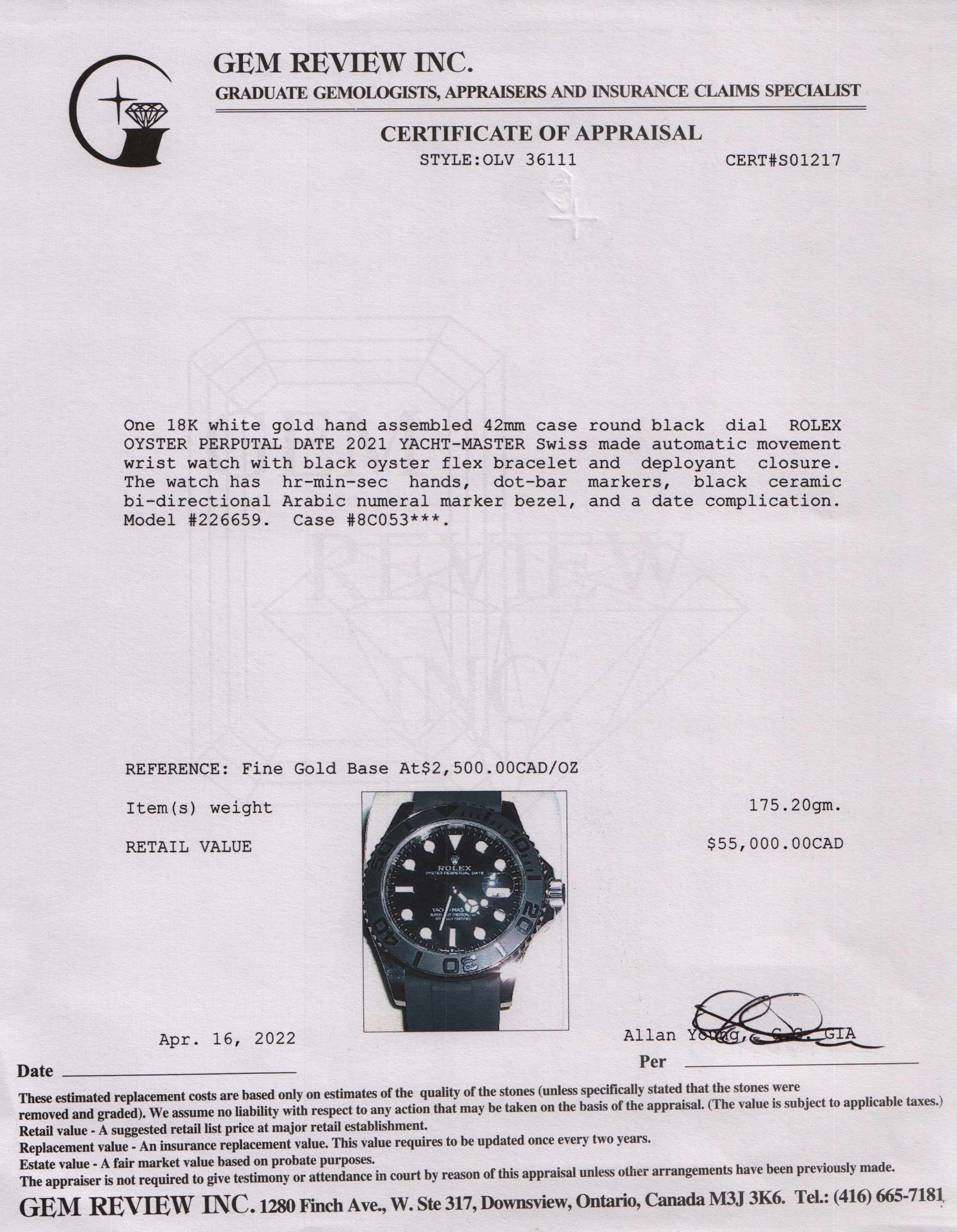 Rolex 2021 18k White Gold Yacht-Master 42mm Watch w/ Box & Papers