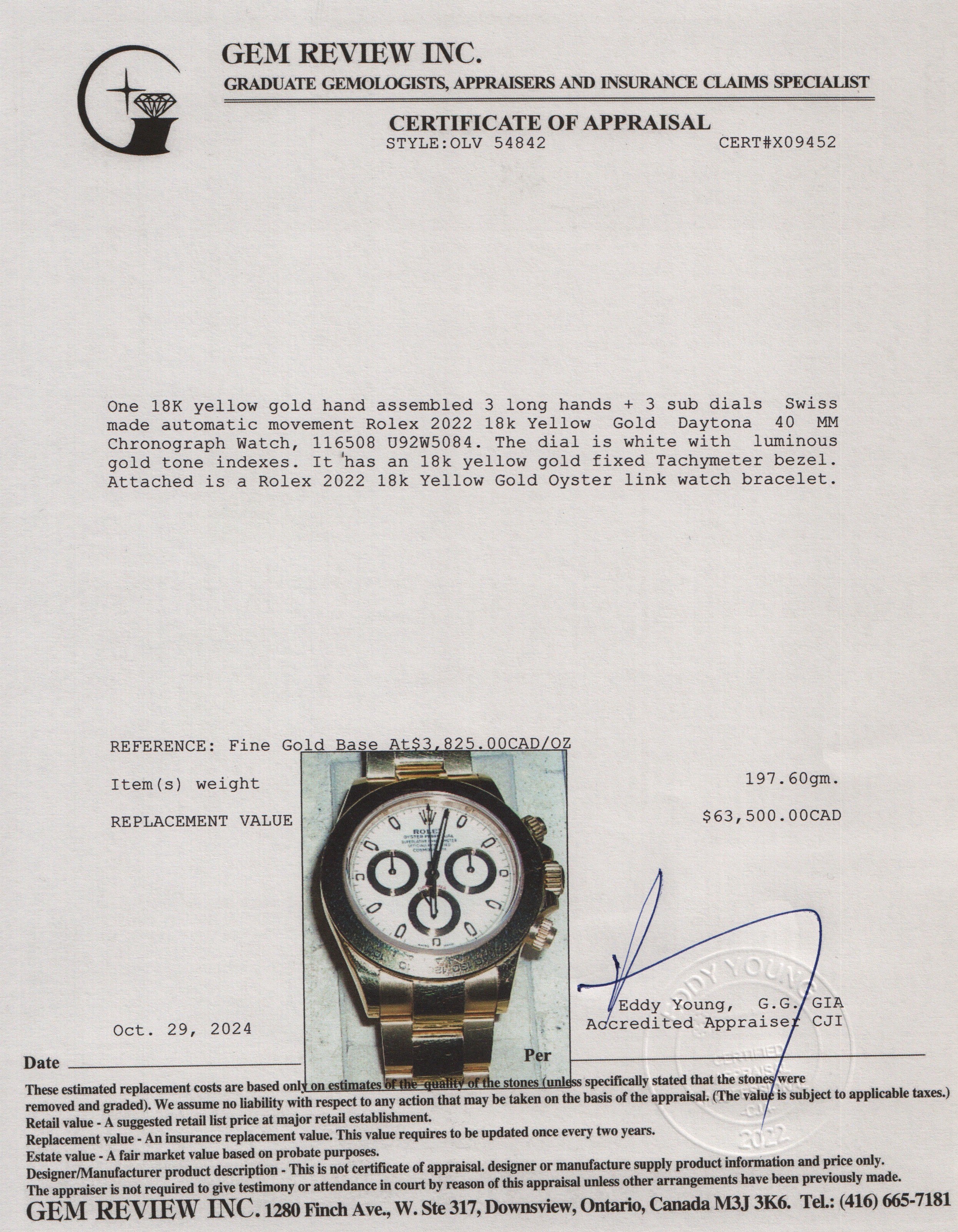 2022 18k Yellow Gold Daytona 40 MM Chronograph Watch 116508 w/ Box & Papers