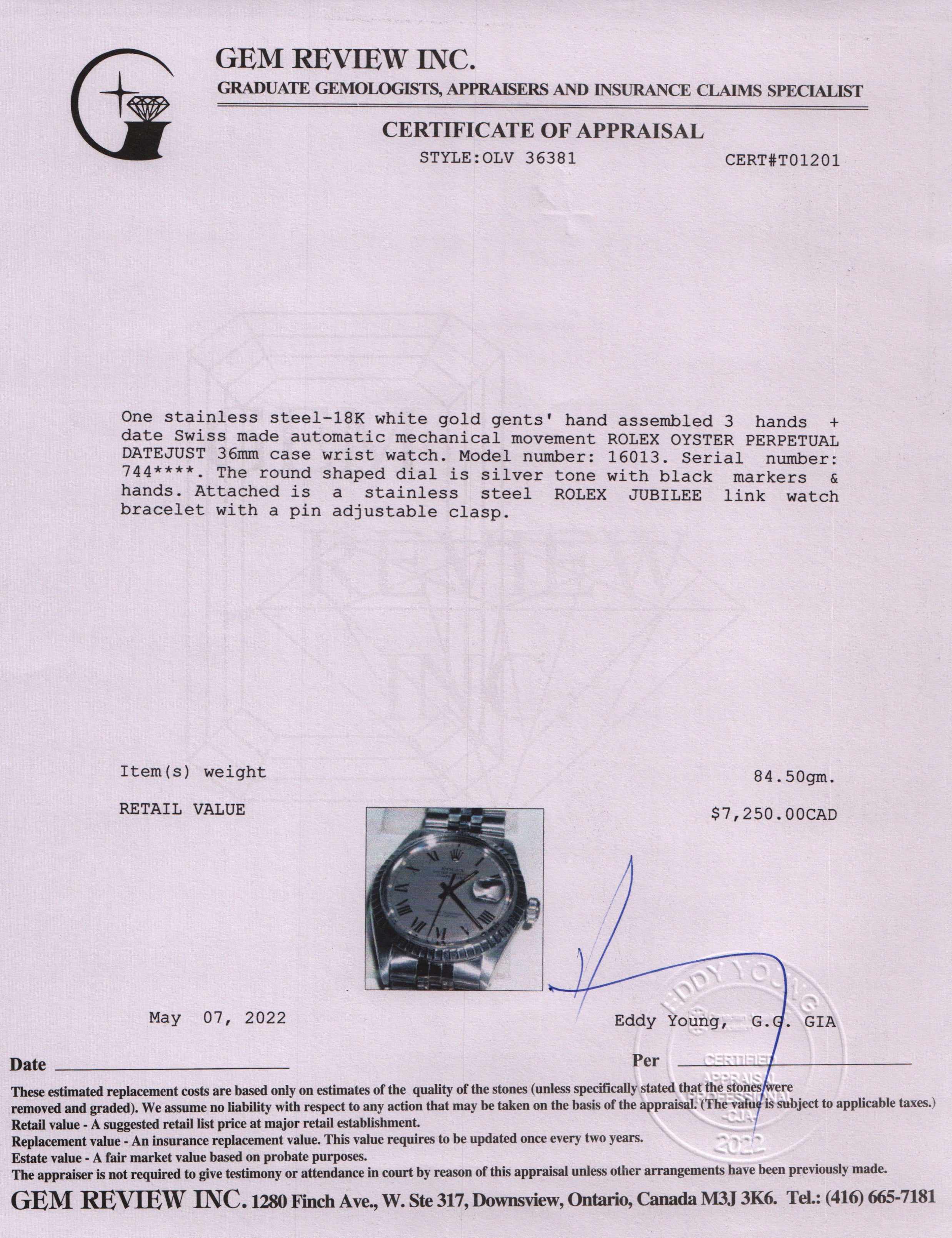 Included Items: Rolex Service Papers & Gem Review Appraisal