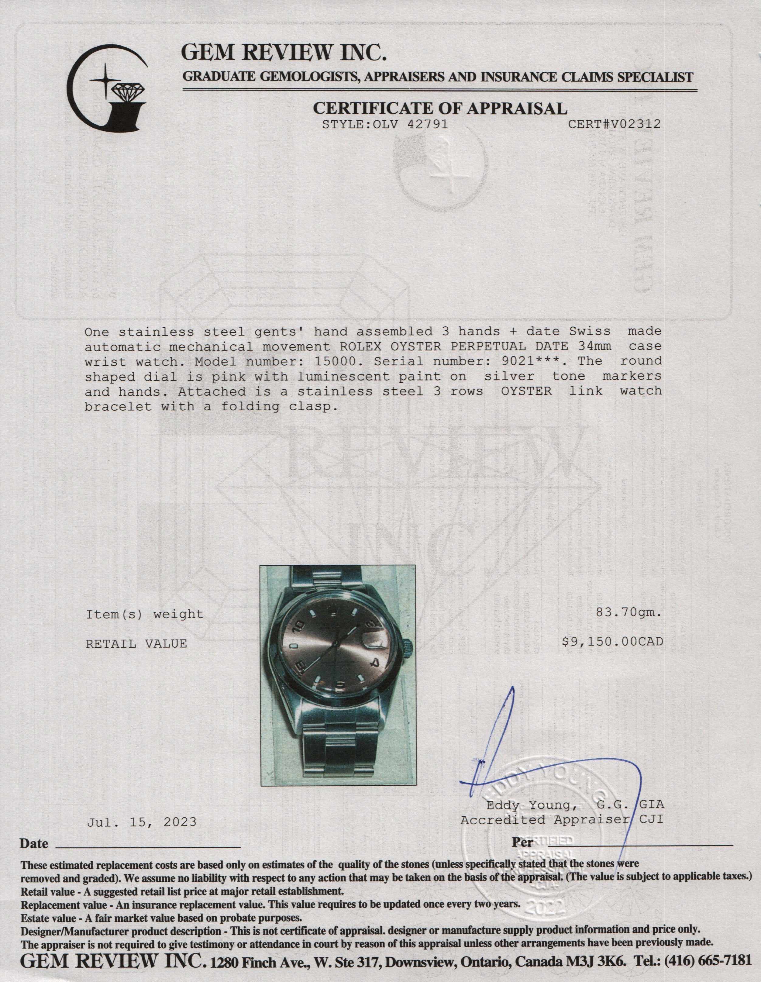 Oyster Perpetual Date 34 MM Watch w/ Service Paper