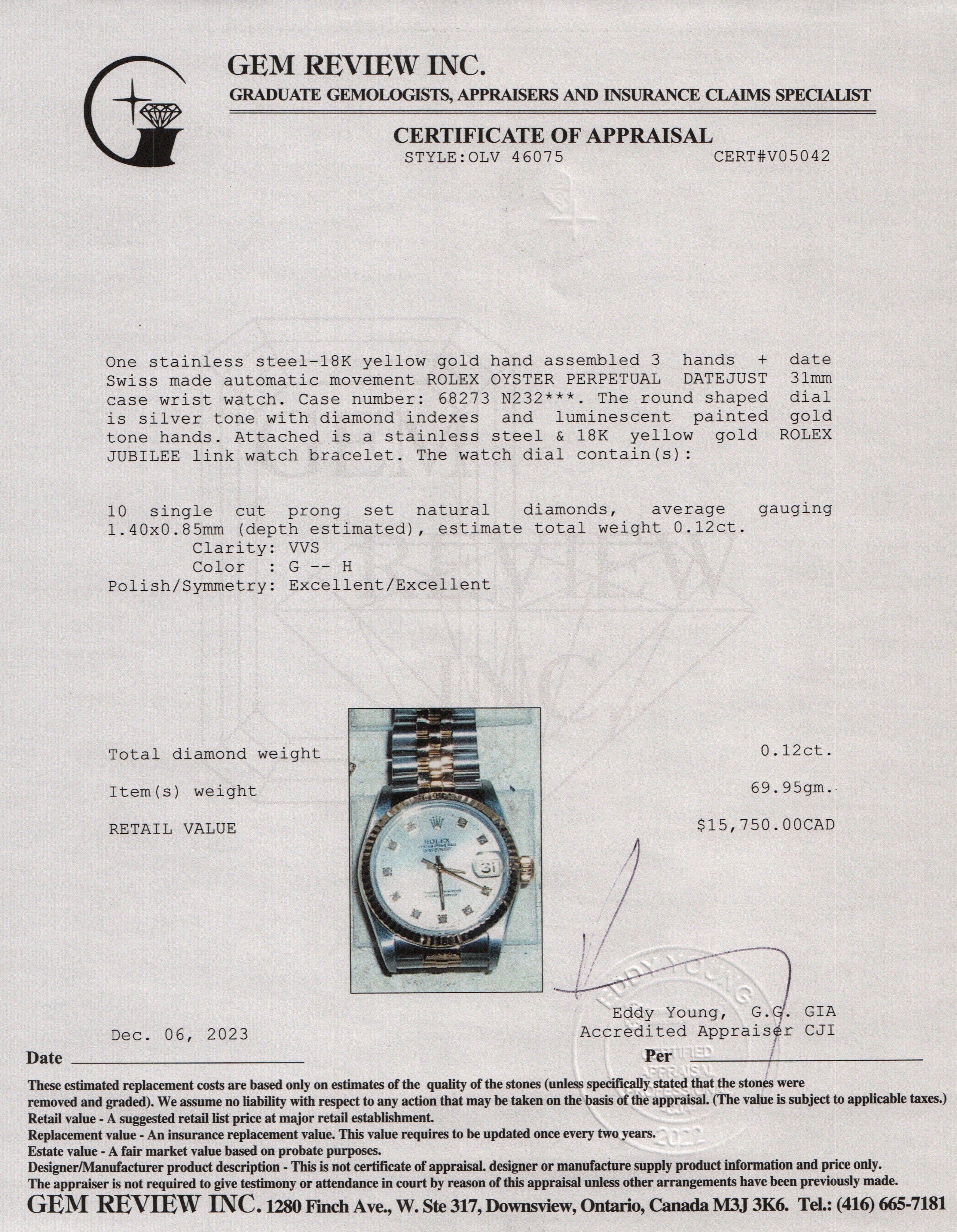 Stainless Steel & 18k Yellow Gold Datejust 31 MM Watch w/ Box