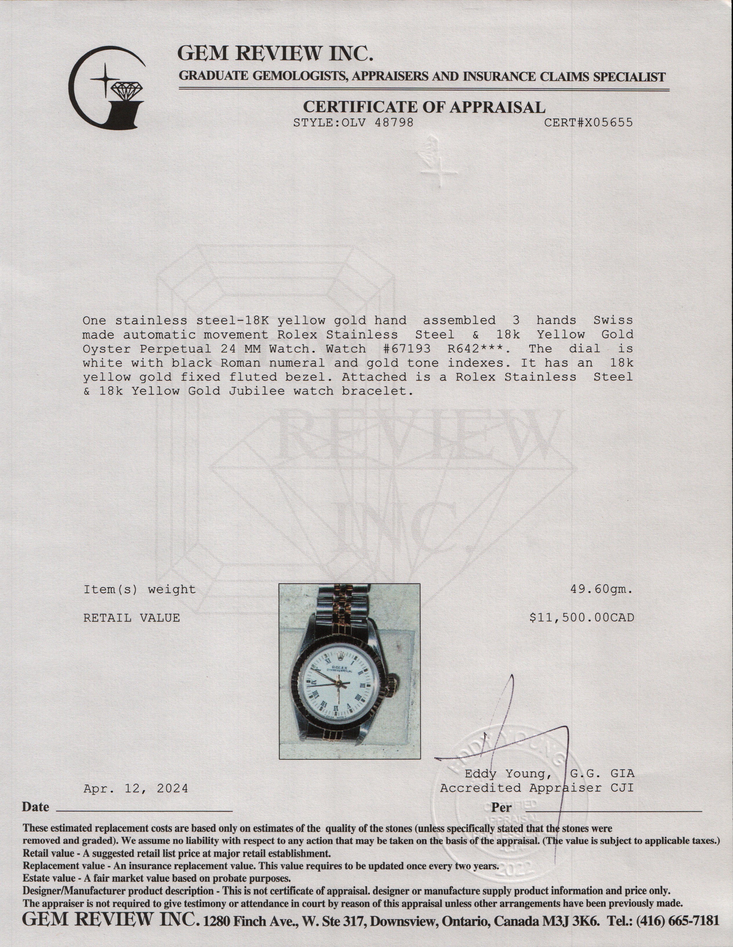 Stainless Steel & 18k Yellow Gold Oyster Perpetual 24 MM Watch w/ Papers