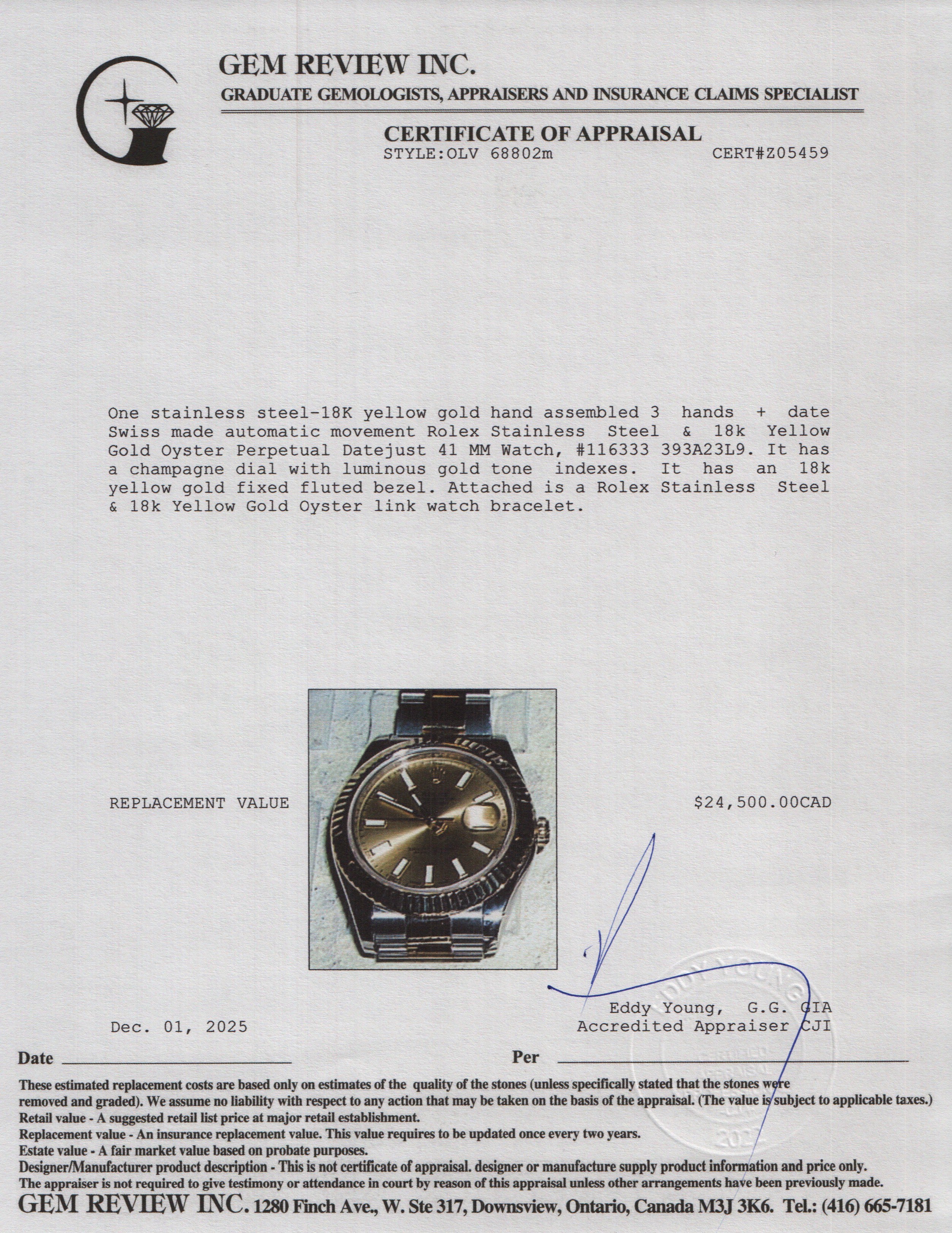 Stainless Steel & 18k Yellow Gold Oyster Perpetual Datejust II 41 MM Watch Gold Dial 116333
