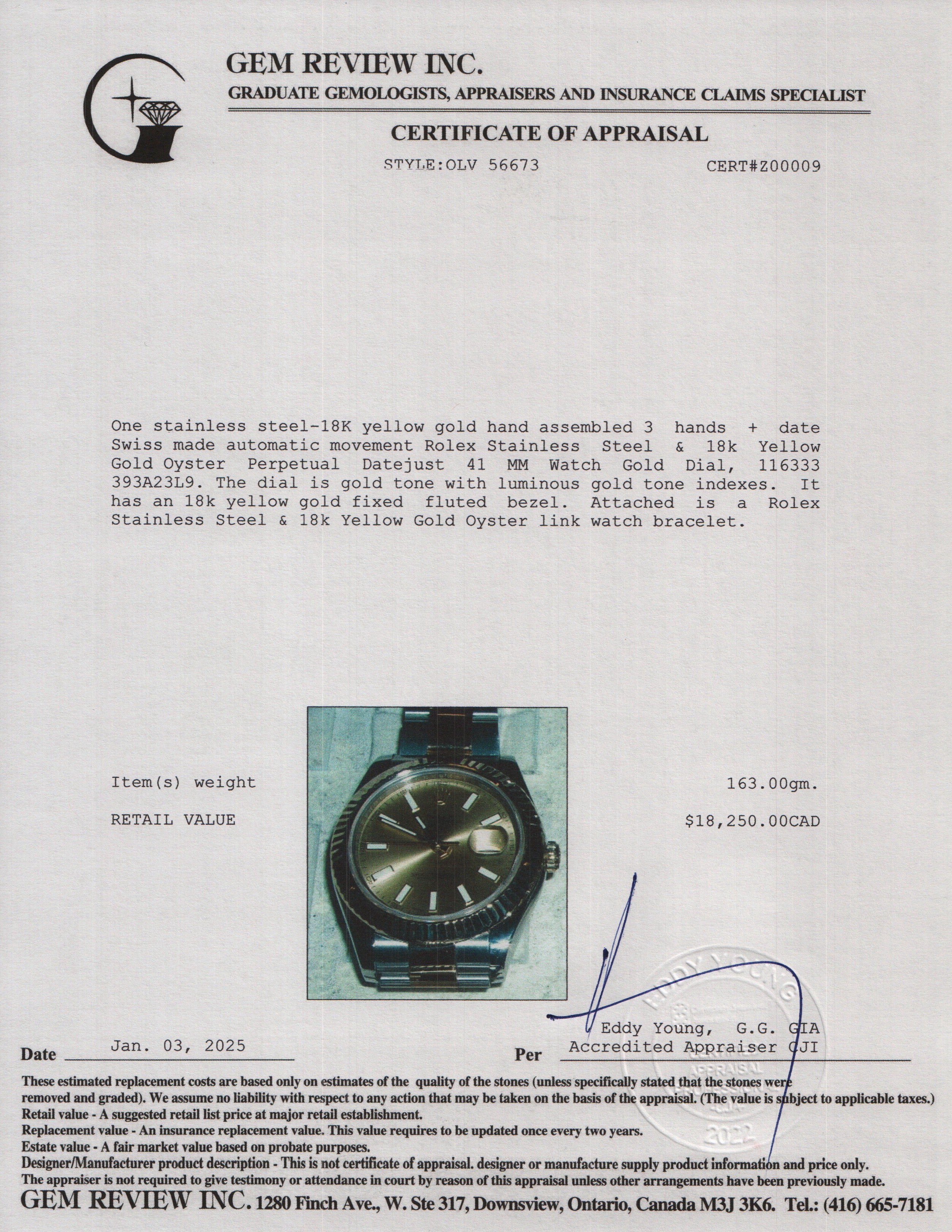 Stainless Steel & 18k Yellow Gold Oyster Perpetual Datejust II 41 MM Watch Gold Dial 116333 w/ Box & Papers