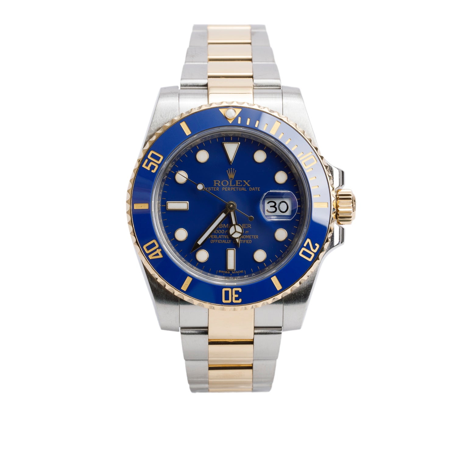 Stainless Steel & 18k Yellow Gold Submariner Date 40 MM Automatic Watch Blue Dial 116613 w/ Box & Papers