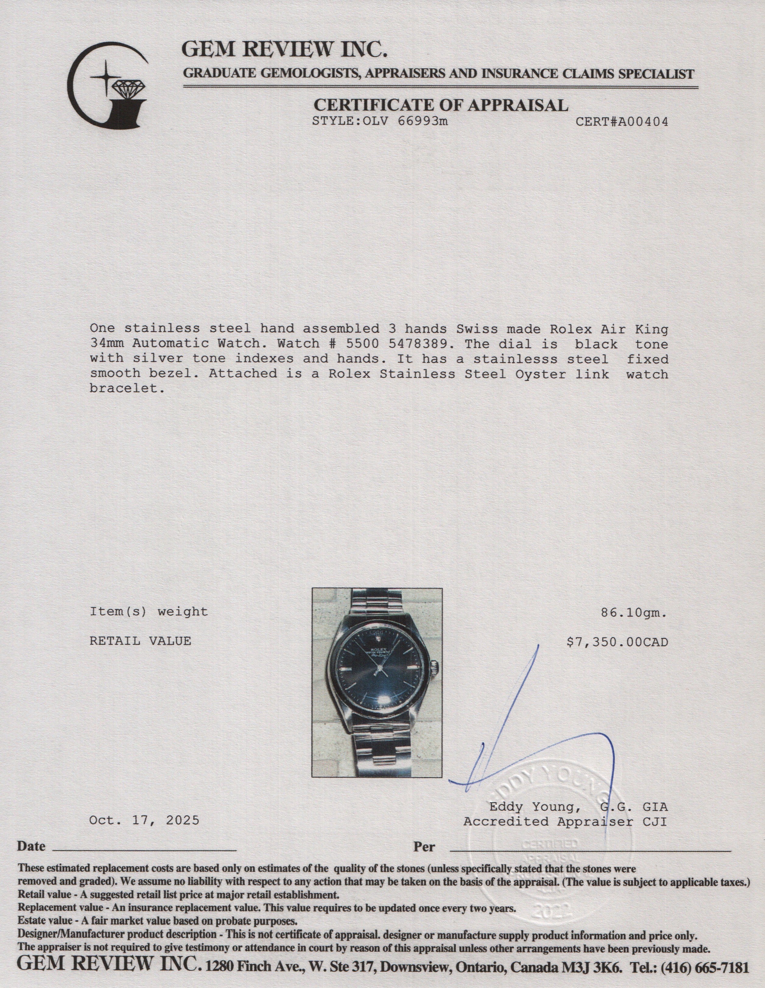 Stainless Steel Air King 34 MM Automatic Watch Black Dial 5500 w/ Box