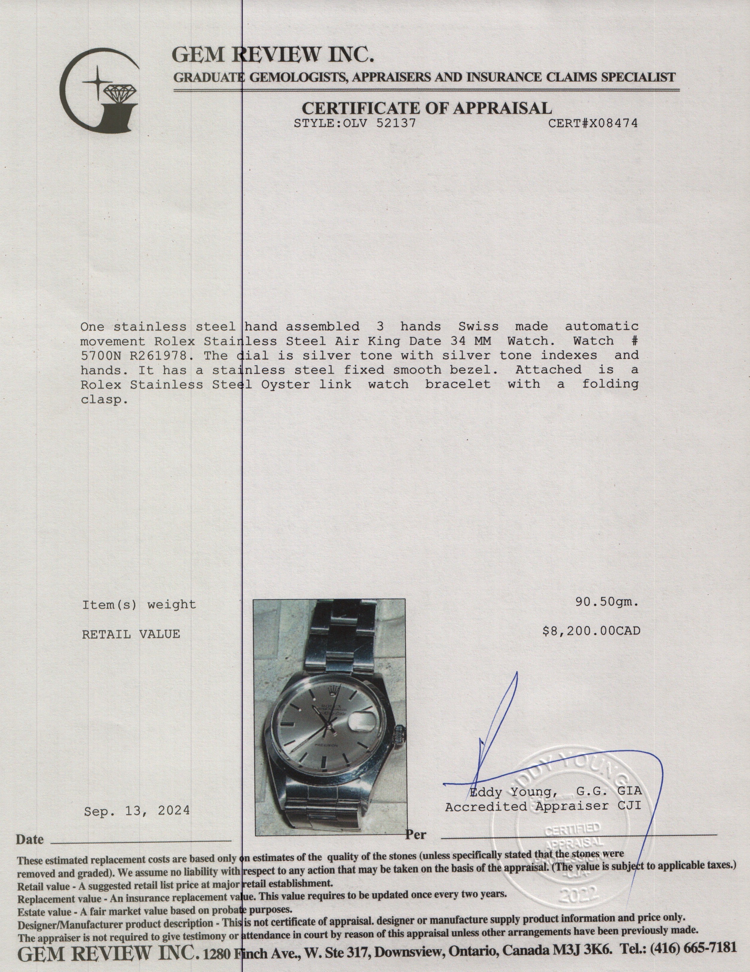 Stainless Steel Air King Date 34 MM Watch 5700N
