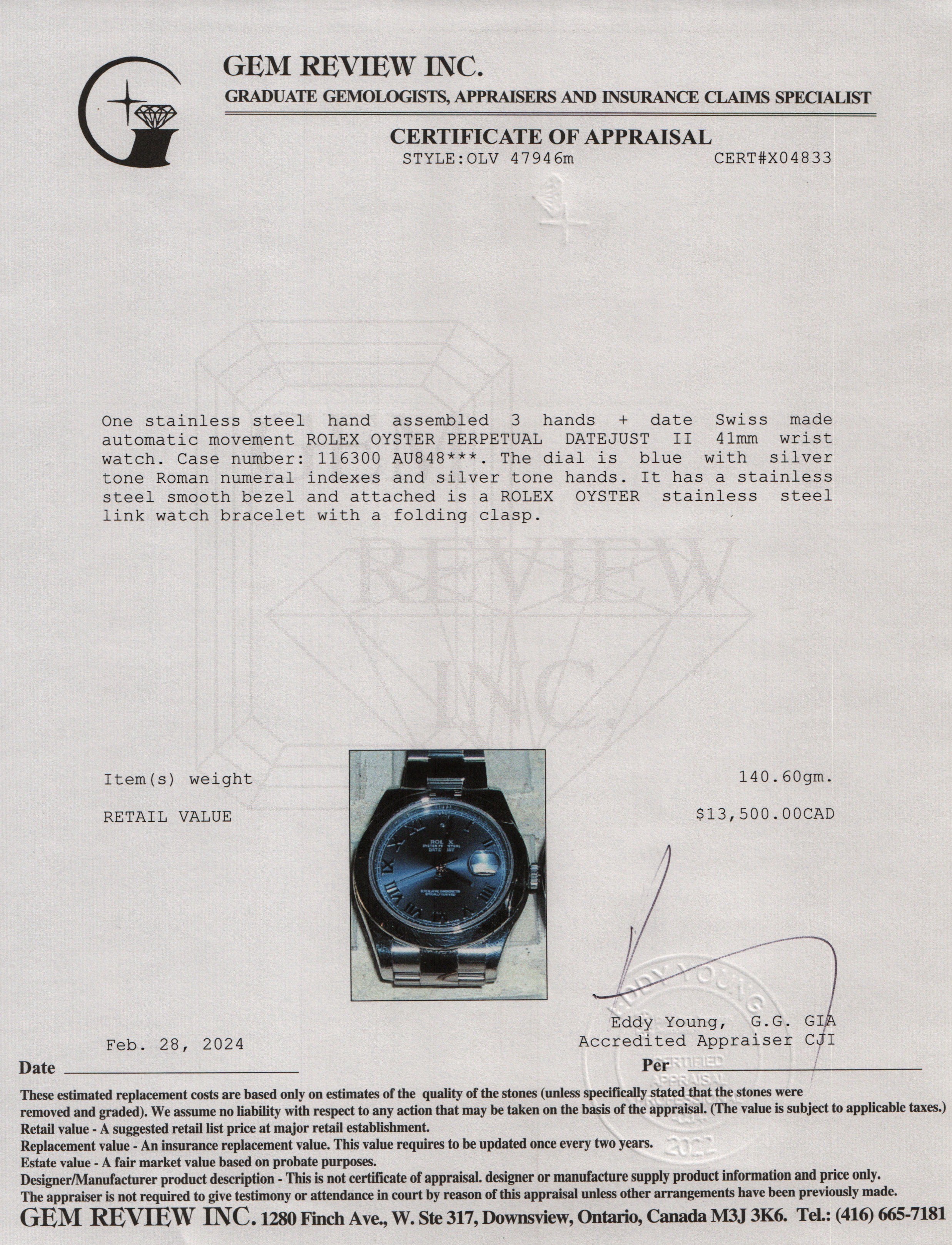 Stainless Steel Datejust II 41 MM Watch w/ Papers