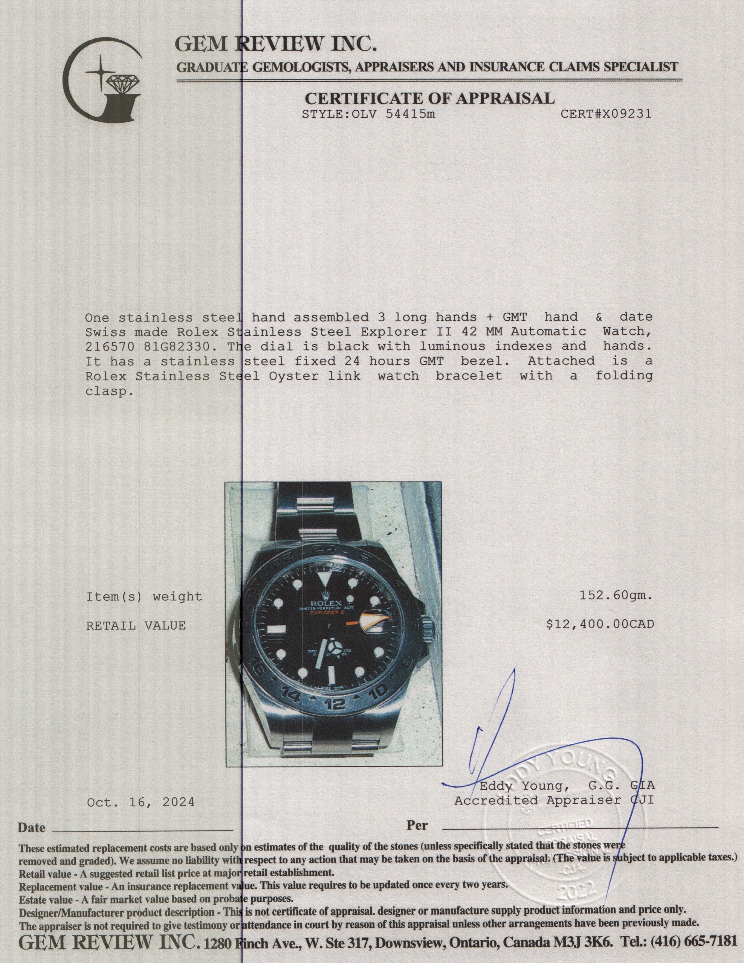 Stainless Steel Explorer II 42 MM Automatic Watch 216570 w/ Box & Papers