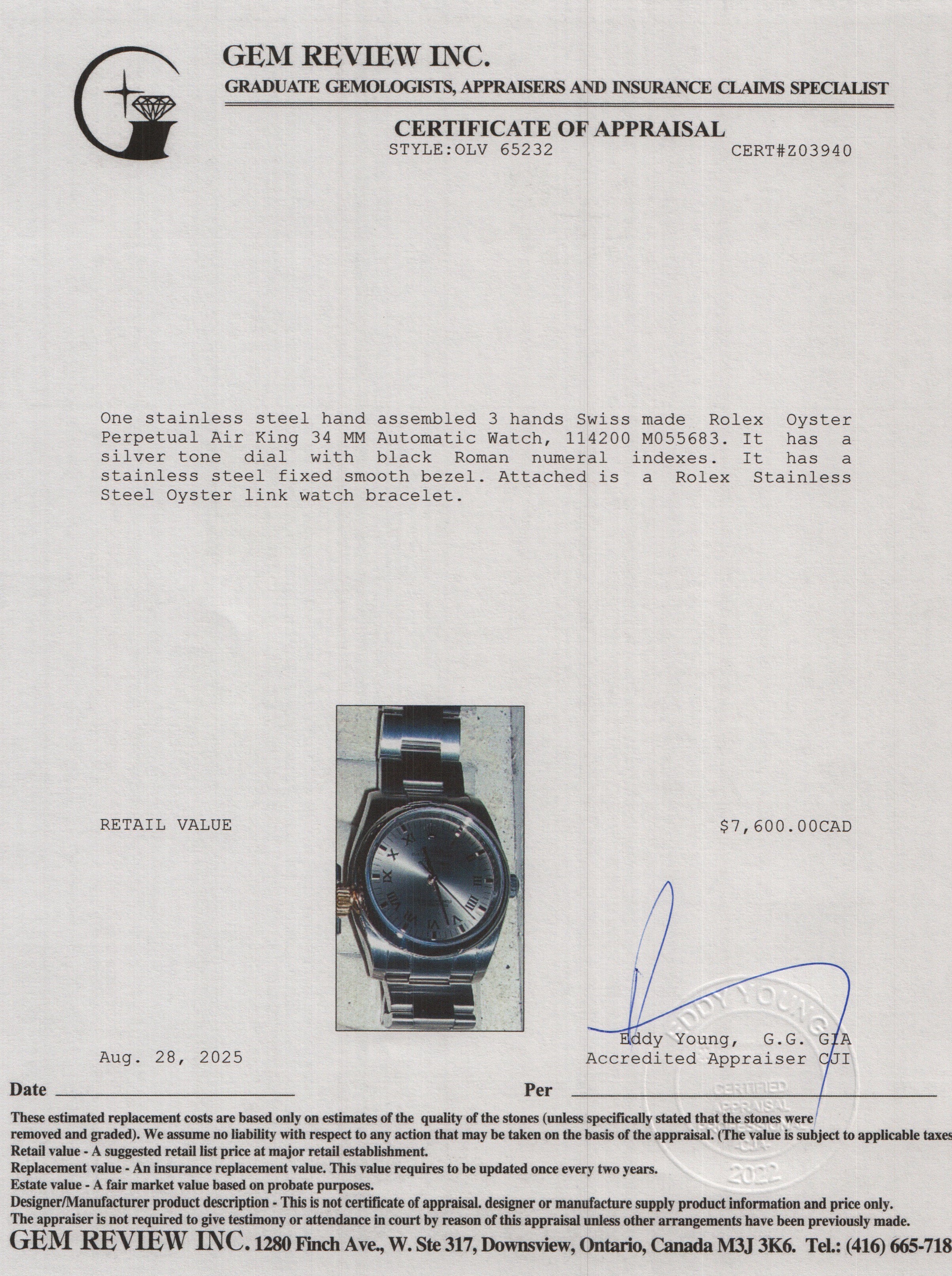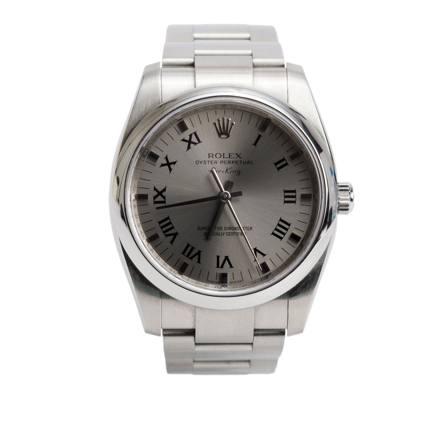 Stainless Steel Oyster Perpetual Air King 34 MM Automatic Watch Silver Dial 114200