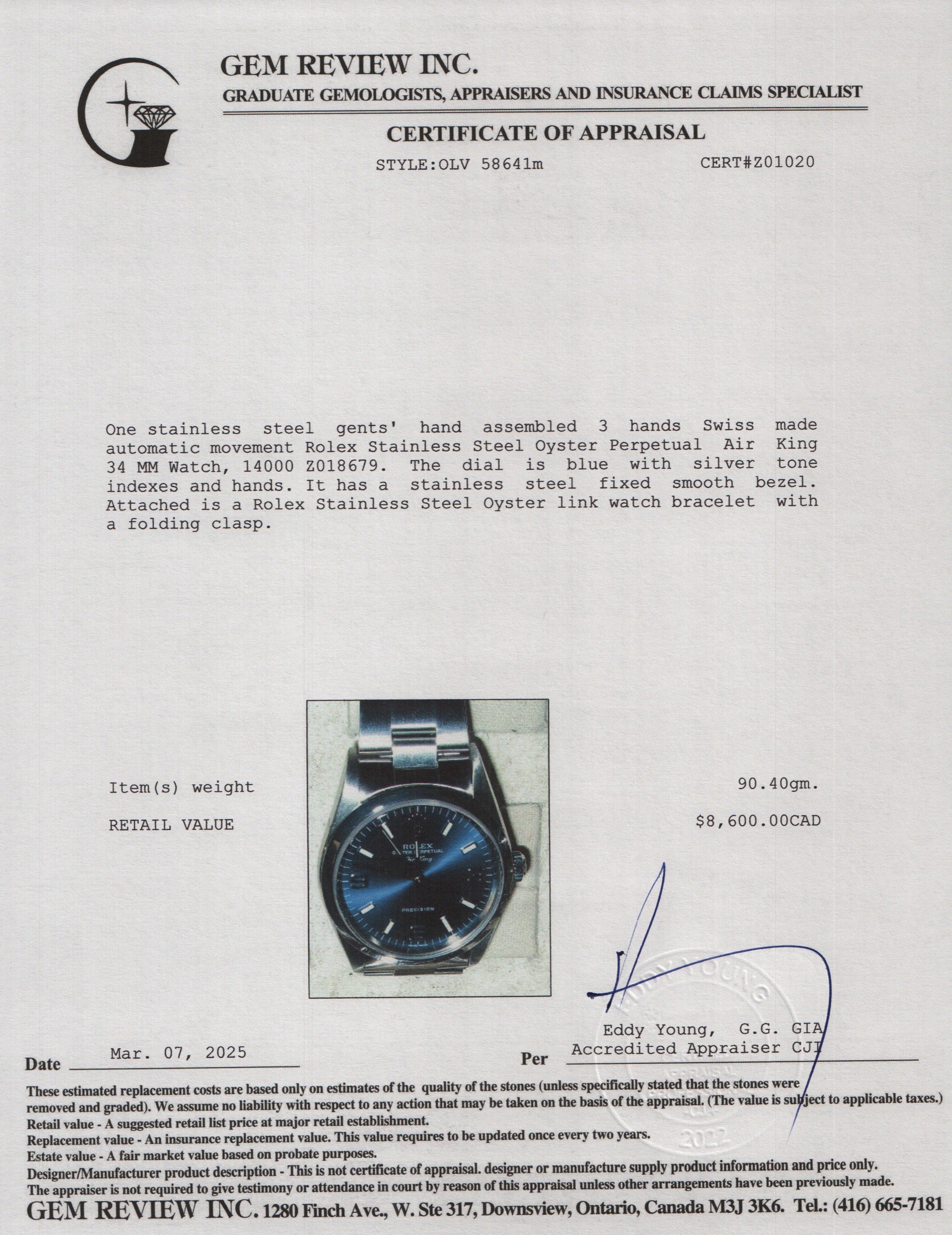 Box, Certificate, Booklet, Gem Review Appraisal