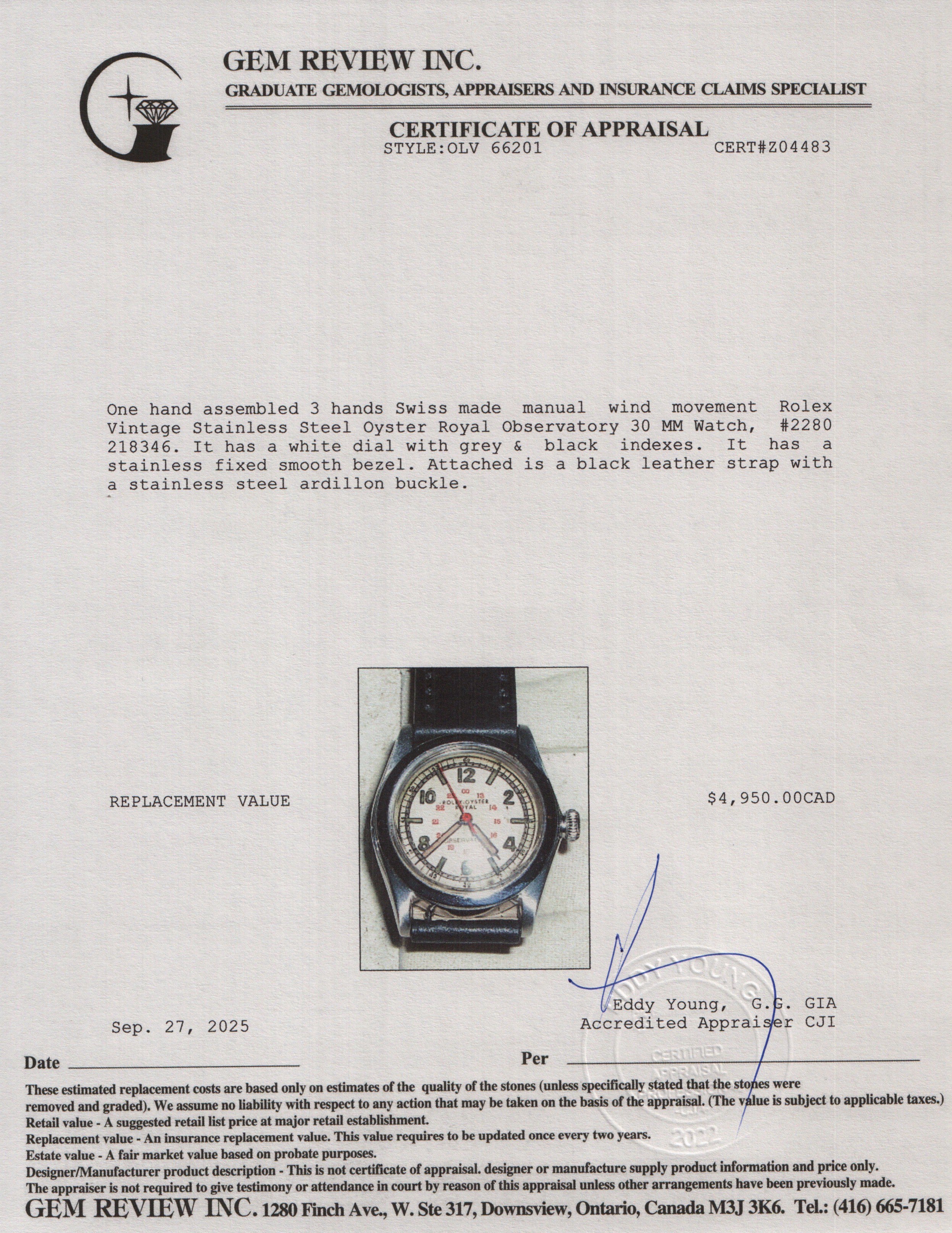 Vintage Stainless Steel Oyster Royal Observatory 30 MM Watch White Dial 2280