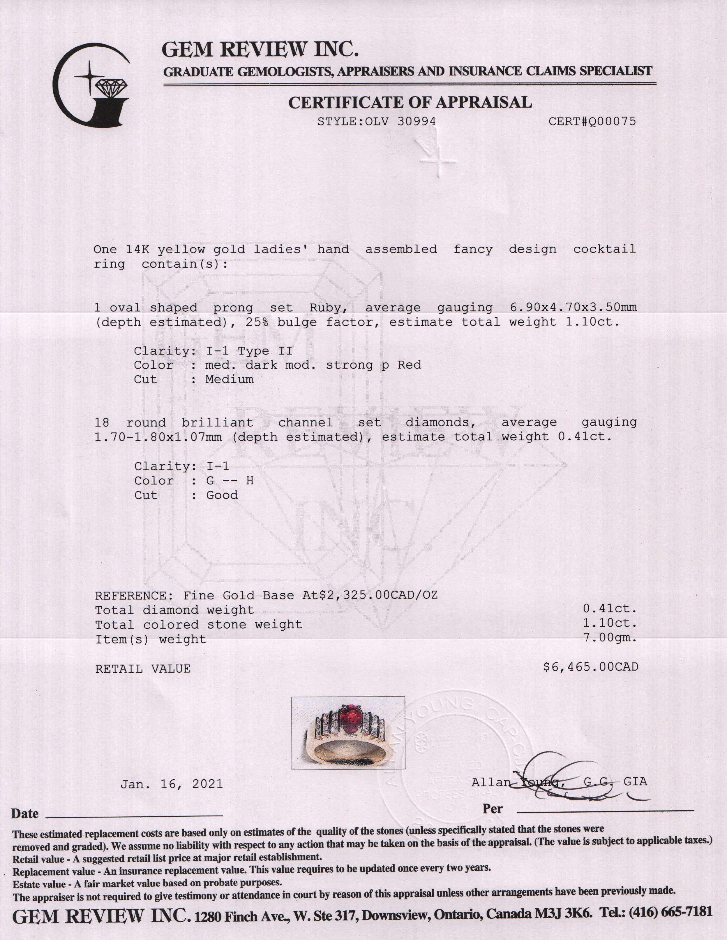 • 1 Oval Shaped Ruby Weighing Approximately 1.10 ct.