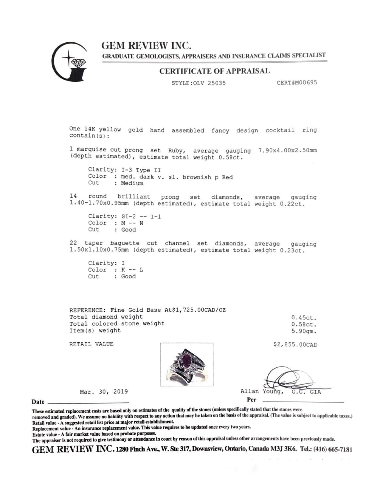 - 1 Marquise Cut Ruby Weighing Approximately 0.58 ct.