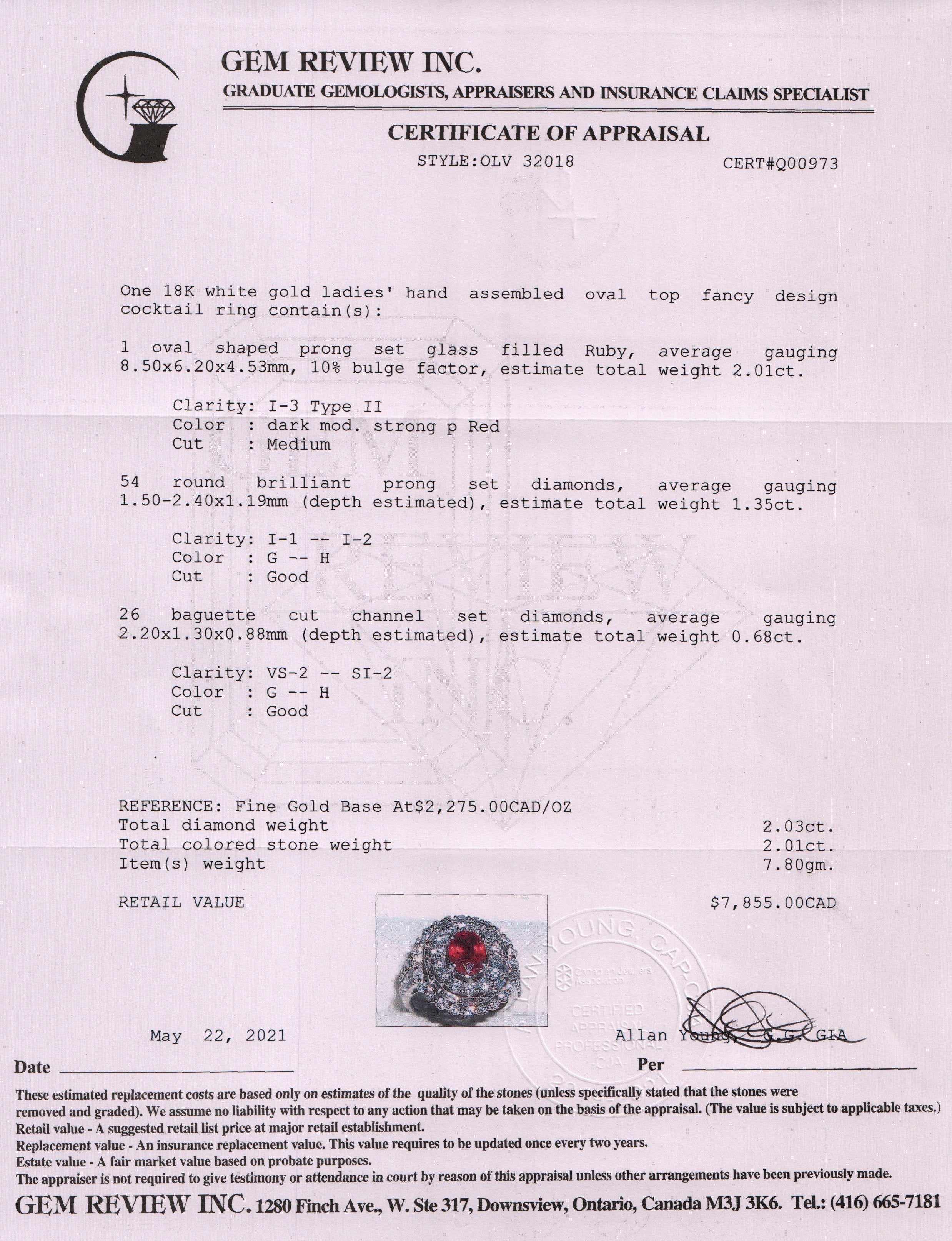 - 1 Oval Shaped Glass Filled Ruby Weighing Approximately 2.01 ct.